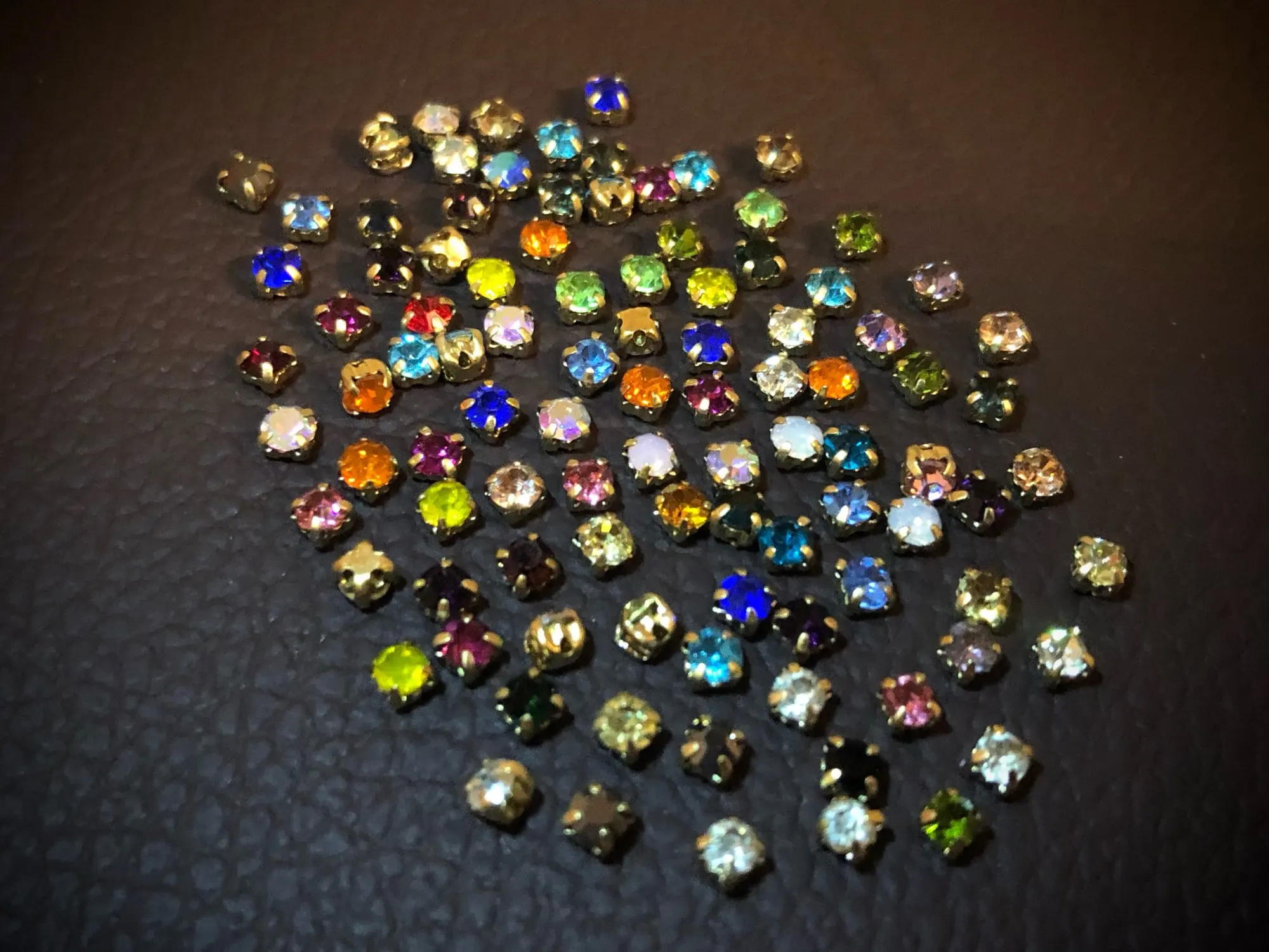 100p 3 мм цветные стразы из хрустального стекла, бриллиантовые украшения, серебряные монтики с когтями, 4 отверстия, камень для пришивания бусины, Ремесленная одежда