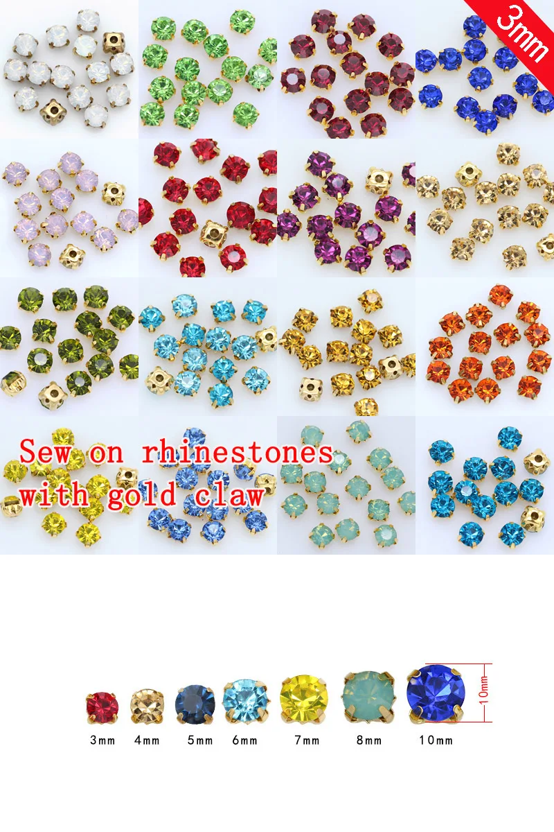 100p 3 мм 4 мм 5 мм 6 мм Цветные AB Пришивные круглые хрустальные стразы драгоценности серебряная чашка коготь монтики шитье свадебное платье украшение