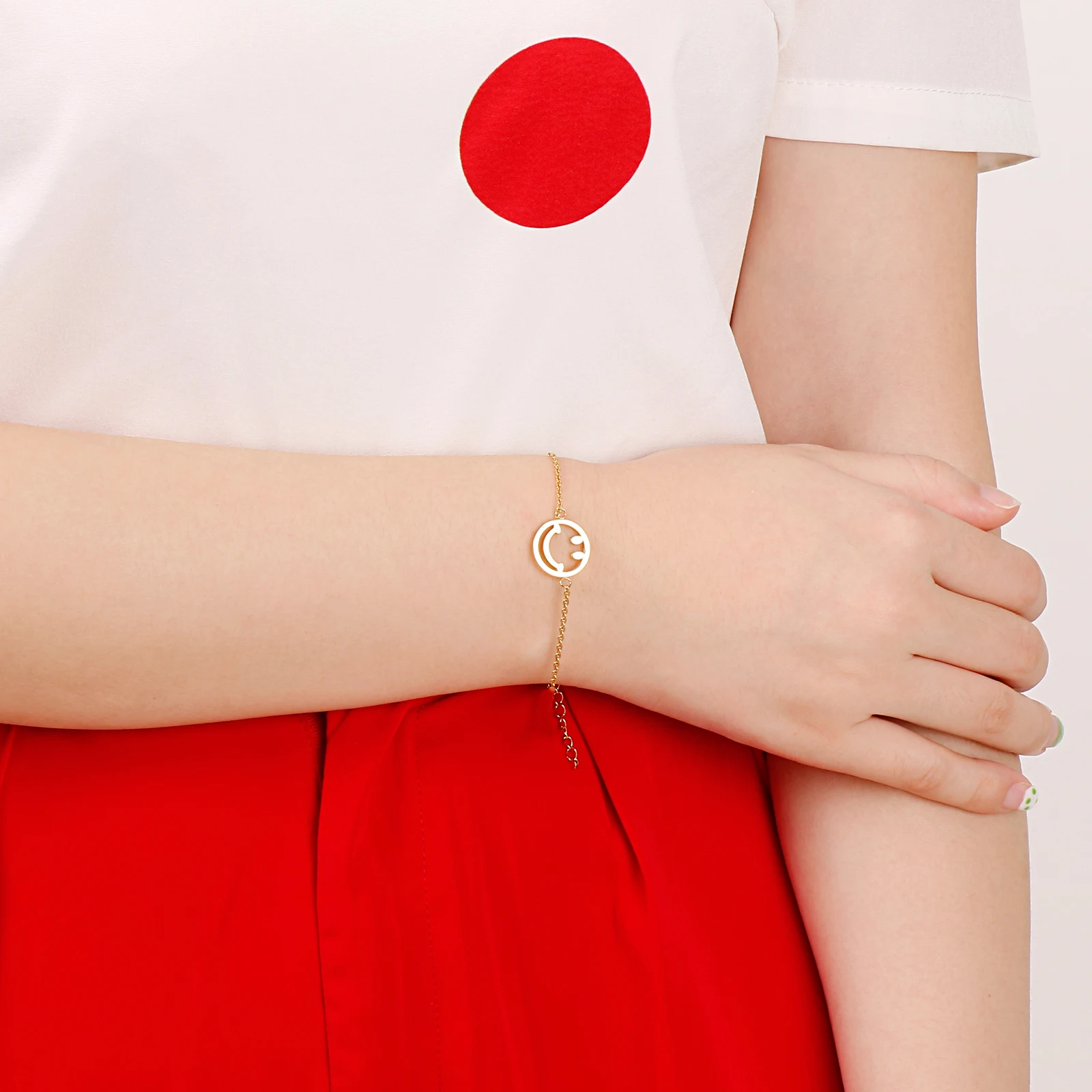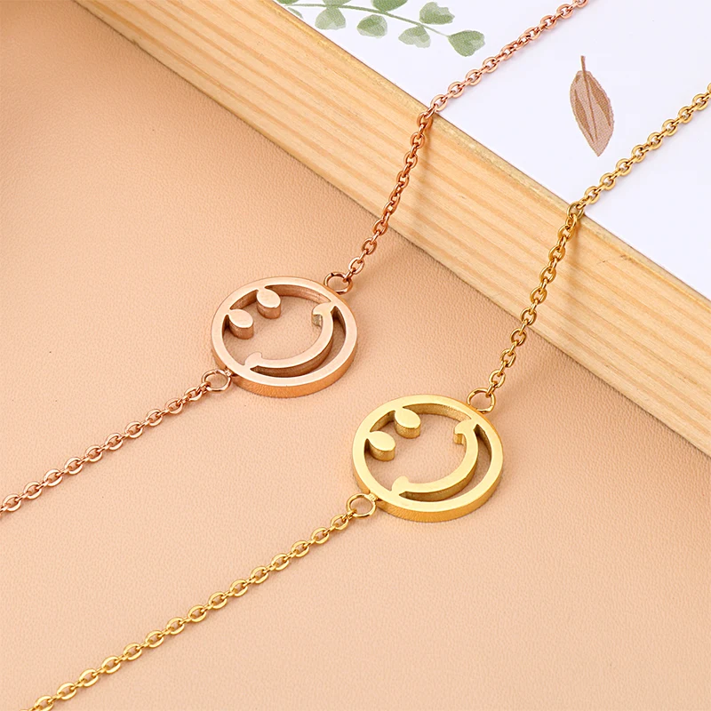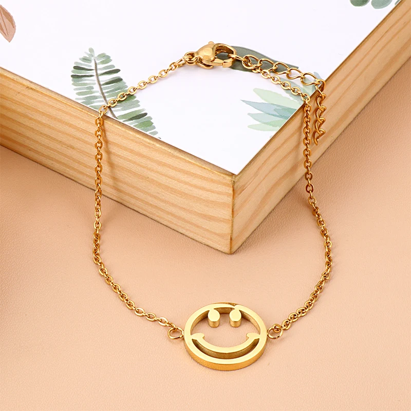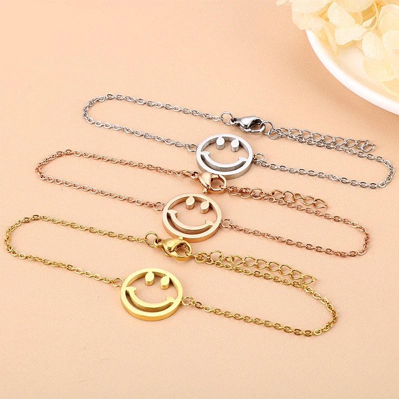Модный браслет со смайликом из нержавеющей стали, три цвета, простые аксессуары, женское ювелирное изделие