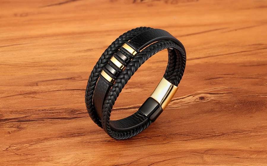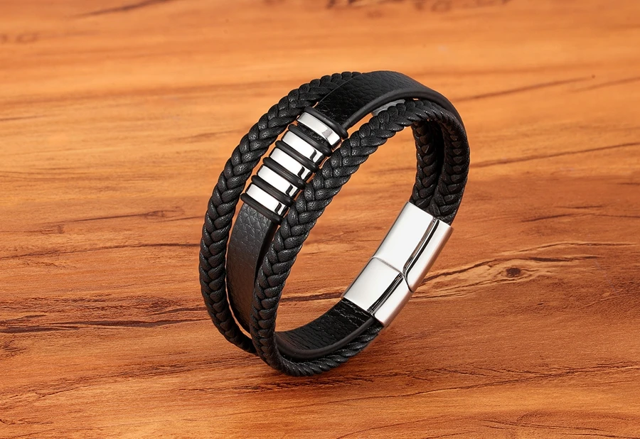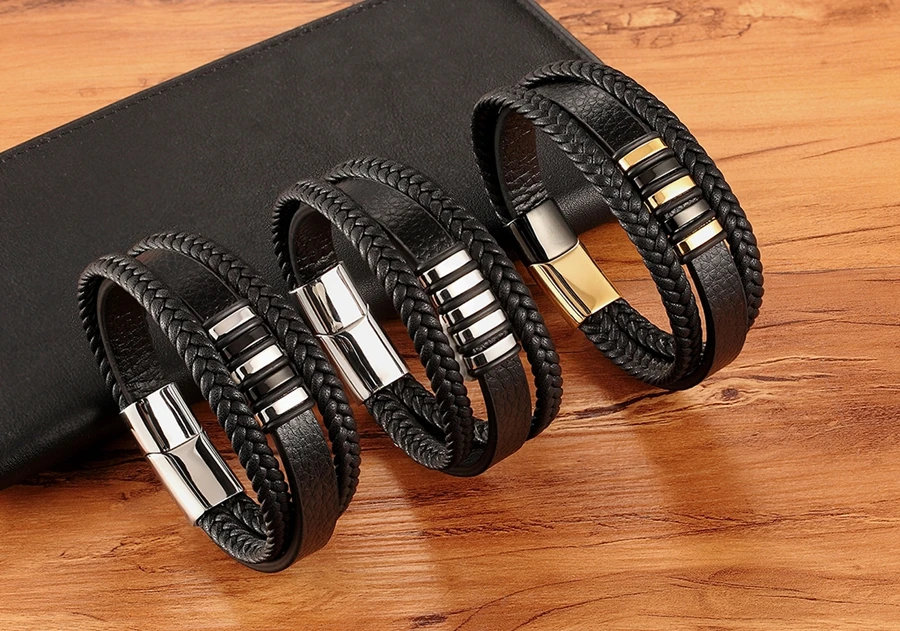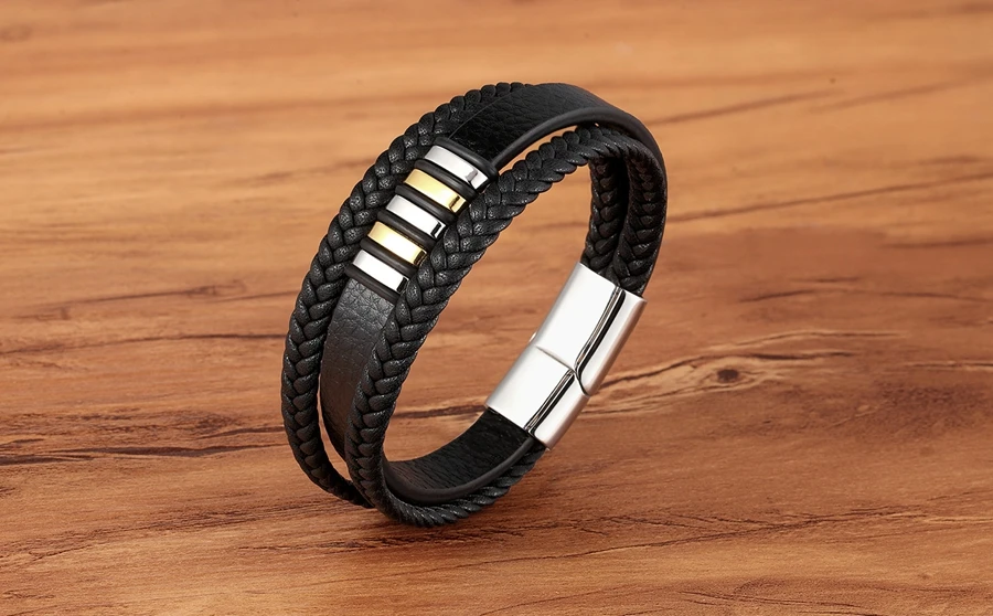 Многослойный 4 вида цветов на выбор, сочетание аксессуаров ручной работы, Мужская Браслет из кожи и нержавеющей стали, подарок на день Святого Валентина