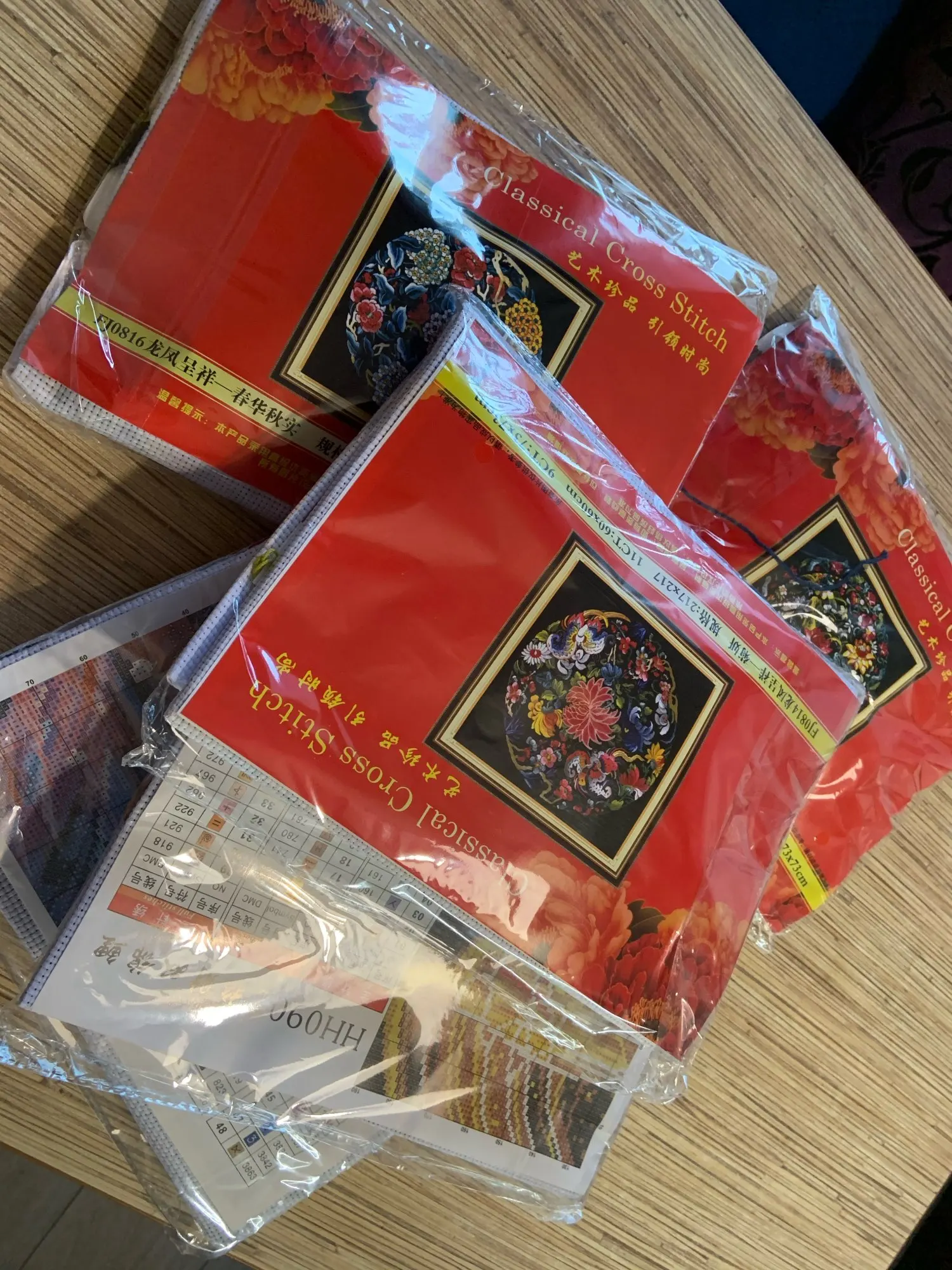 2 посылки объединили в одну, пришли в почтомат... Красивейшие наборы, всем очень довольна... нитки: и шёлк и хлопок красивые, думаю хватит, есть схема бумажная и пропечатана канва. в каждом наборе- ножнички, вспарываетесь, нитковдеватель и иголочки, очень приятно ..... Продавцу огромное спасибо!!!