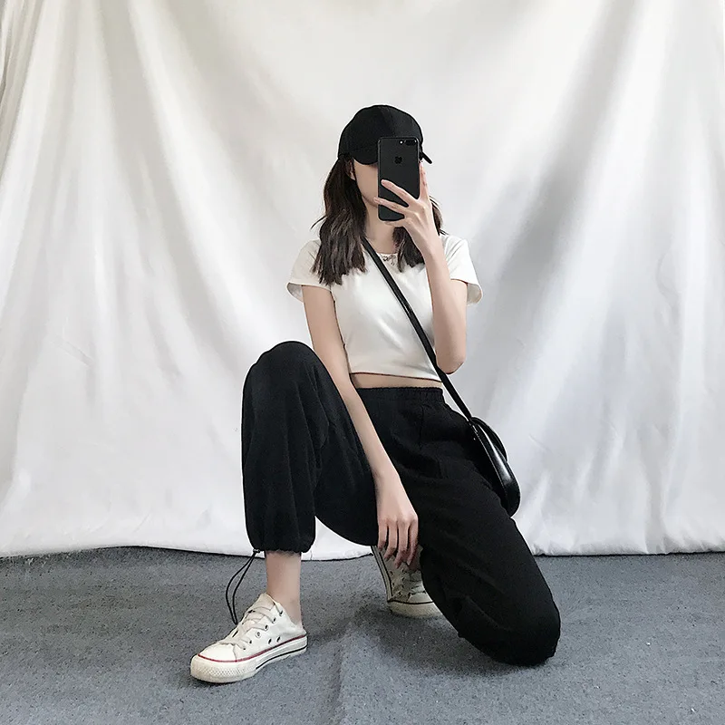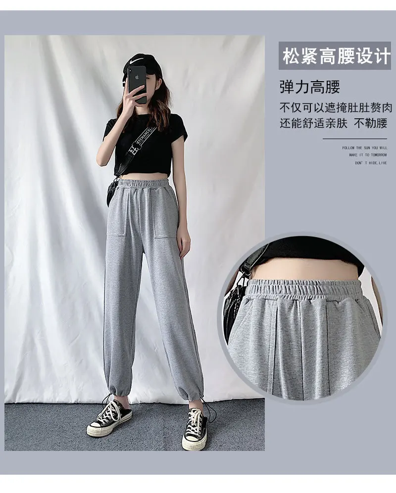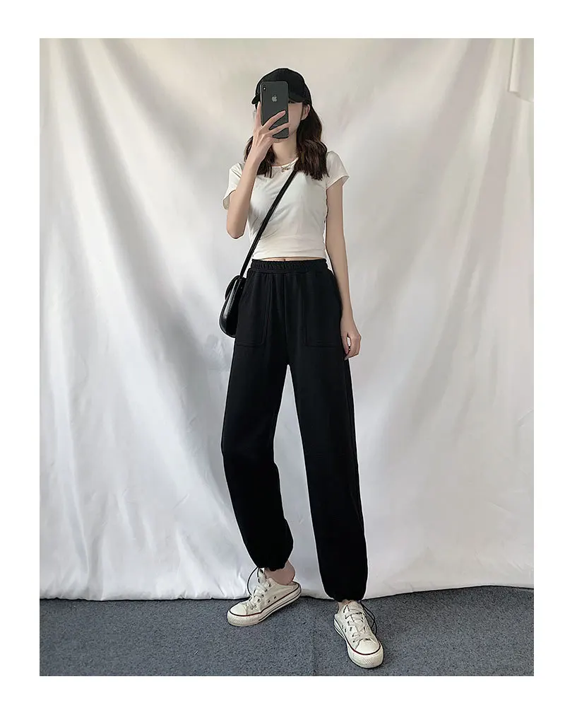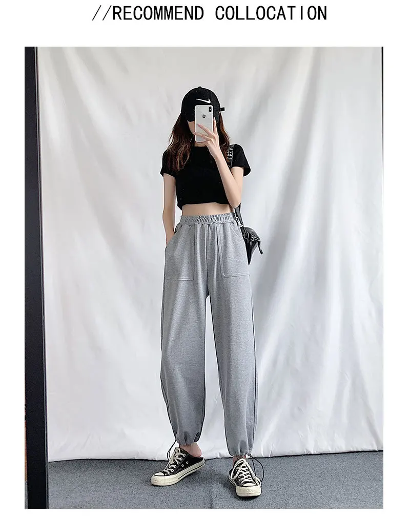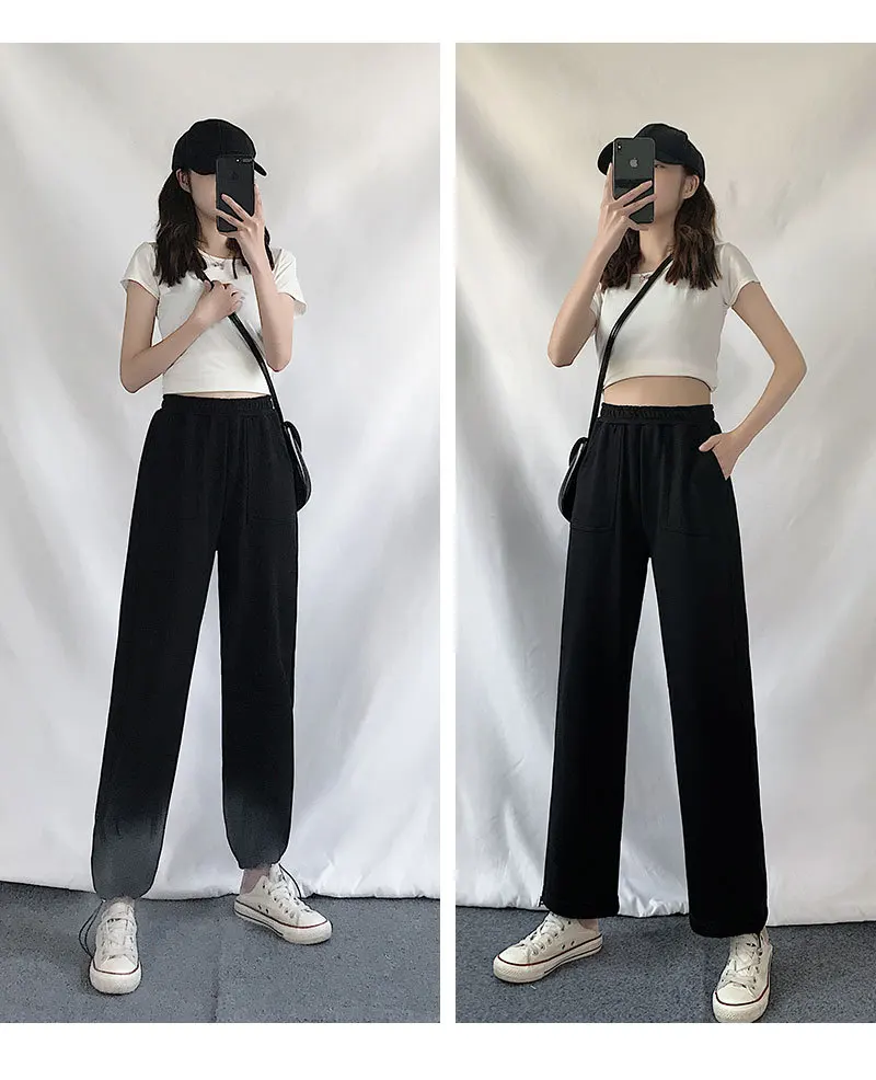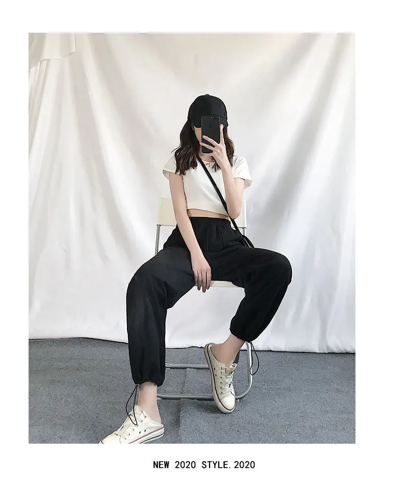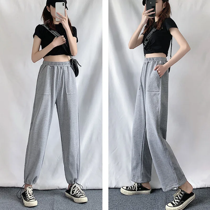 Брюки женские с широкими штанинами, повседневные спортивные штаны, спортивный костюм в стиле хип-хоп с эластичным поясом, уличная одежда, свободные спортивные джоггеры
