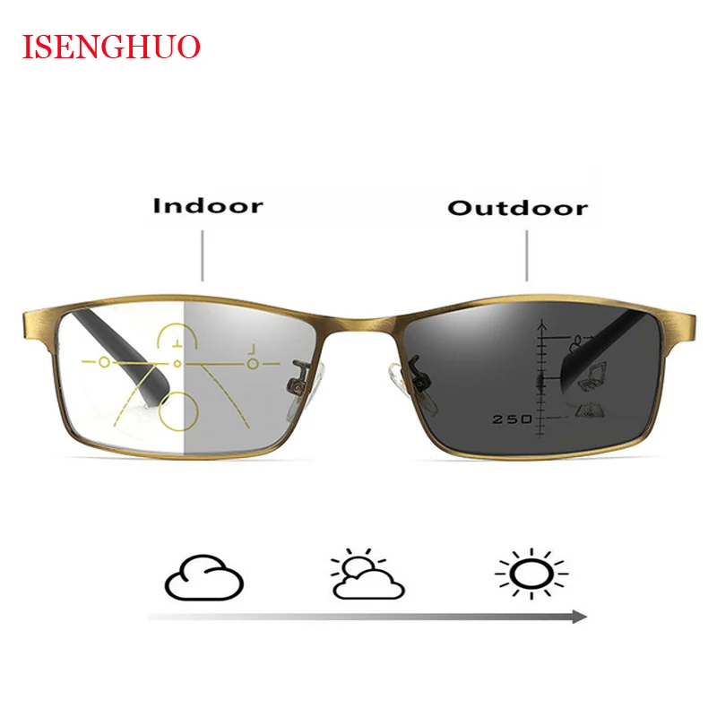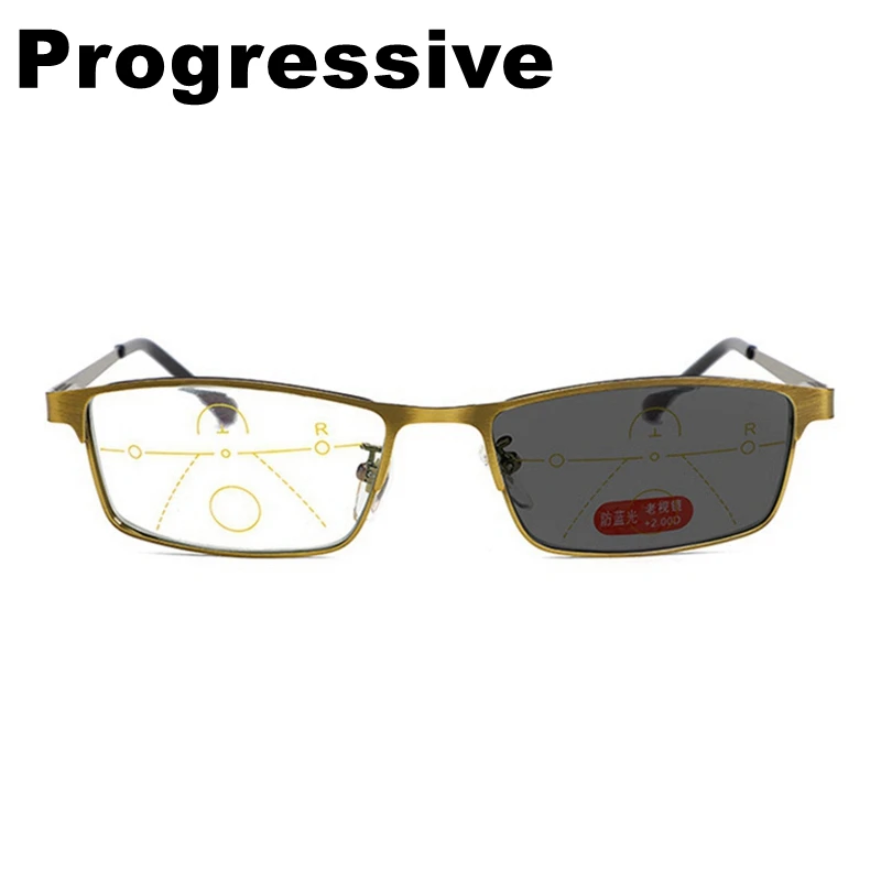 Очки для чтения фотохромные мужские, Мультифокальные, с защитой от синего света, металлическая оправа