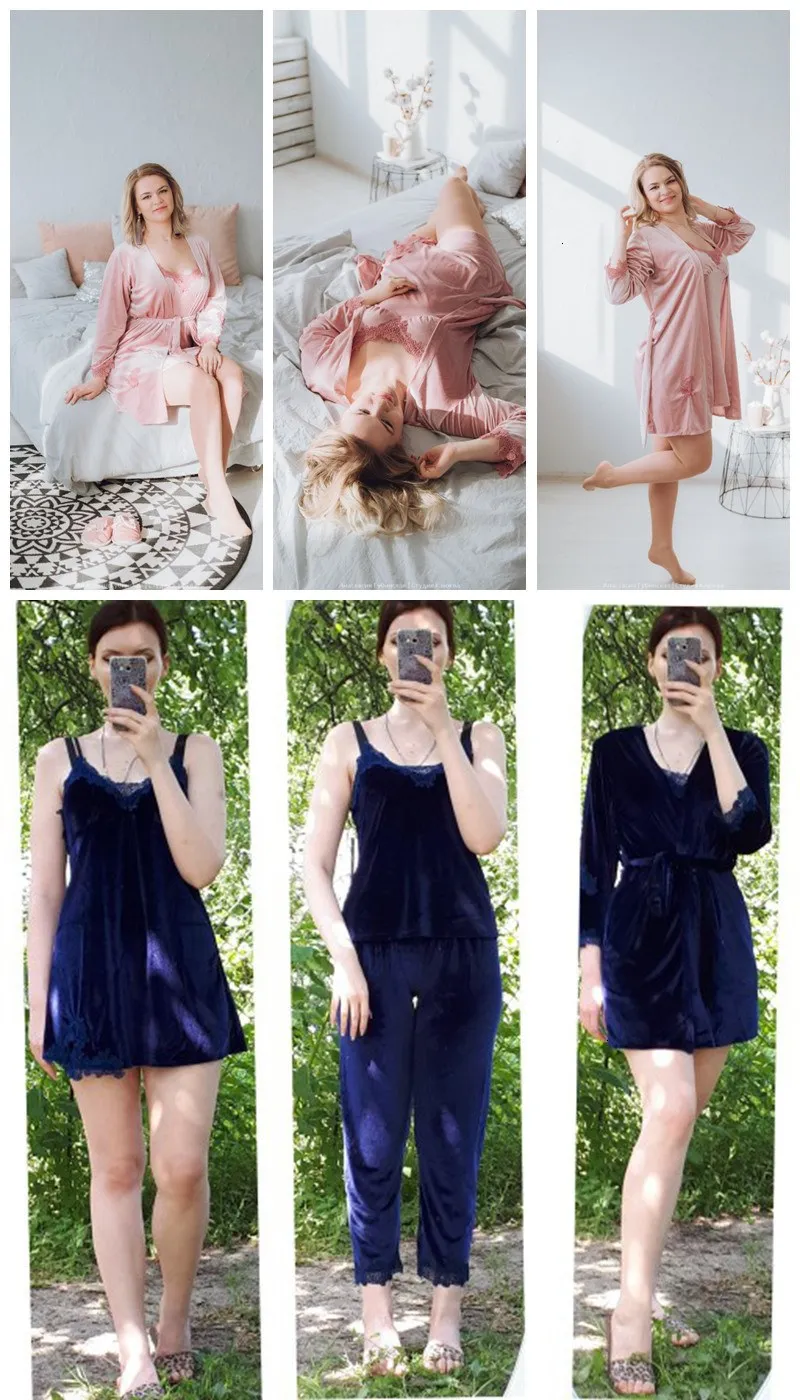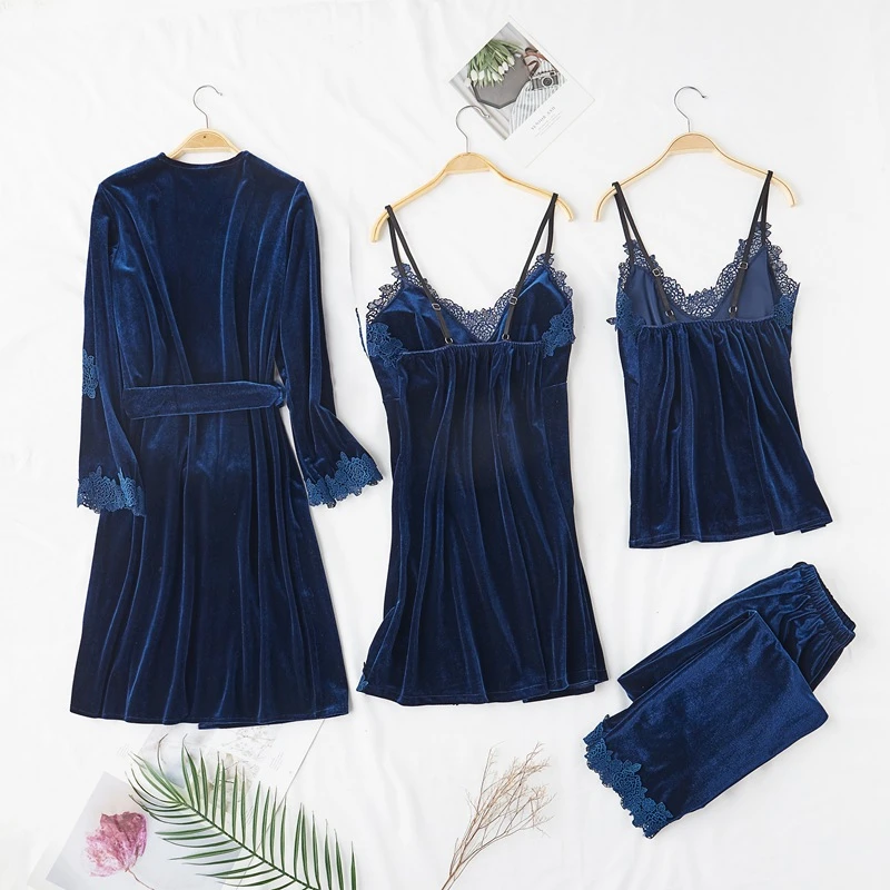 4 шт. пижамные комплекты для женщин, Золотая Бархатная теплая зимня...
