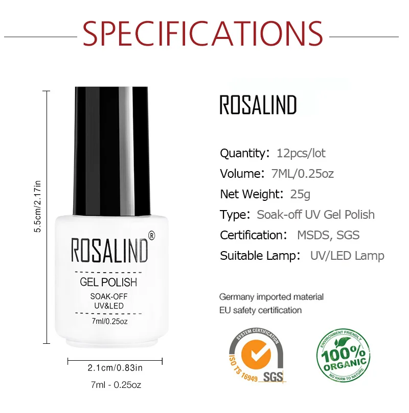 ROSALIND набор гель-лаков для ногтей 7 мл однотонный Набор для маникюра Лак для ногтей Vernis Полупостоянный набор гель-лаков для ногтей Топ и основа
