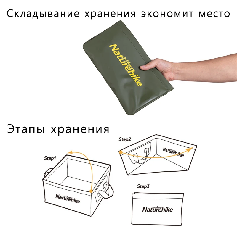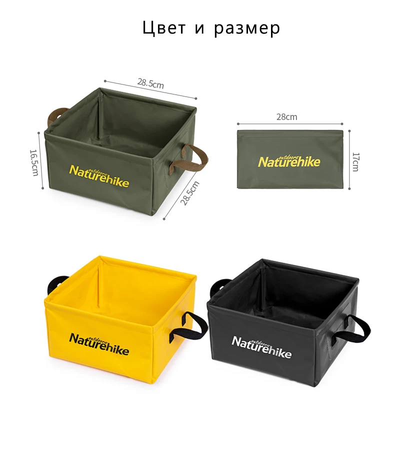 Складная квадратная раковина из ПВХ NatureHike, 13 л, складное ведр...