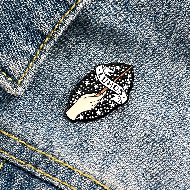 Волшебные заклинания LUMOS эмалевые Броши Булавки черные Волшебные ...