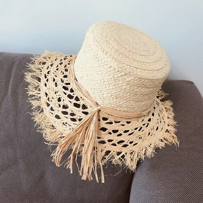 Шляпка от солнца Женская ручной работы, модная Соломенная Панама от солнца, с лентой и мягкими цветами, в винтажном стиле, лето 2020