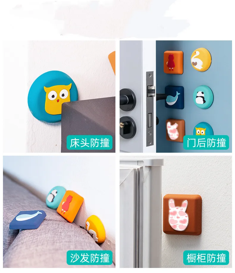 1 шт., мультяшный дверной стопор, силиконовые самоклеящиеся настенные протекторы, дверная ручка, бамперы, буферная защита, стопоры, глушитель, столкновение