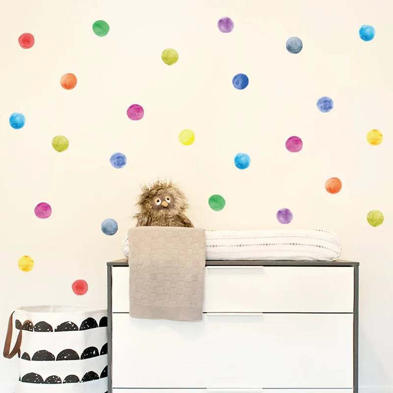 Наклейки на стену детские, в горошек, 48 шт., для украшения детской комнаты, наклейки на стену в детскую
