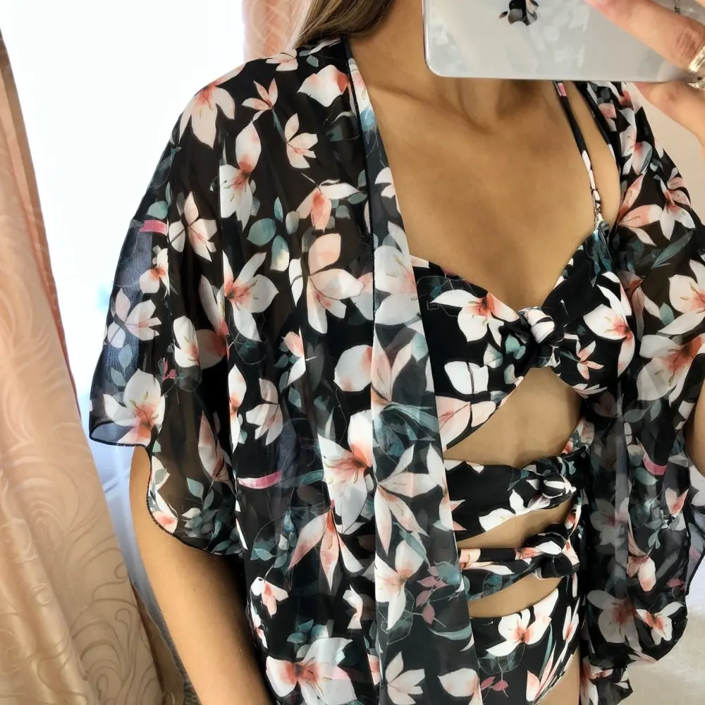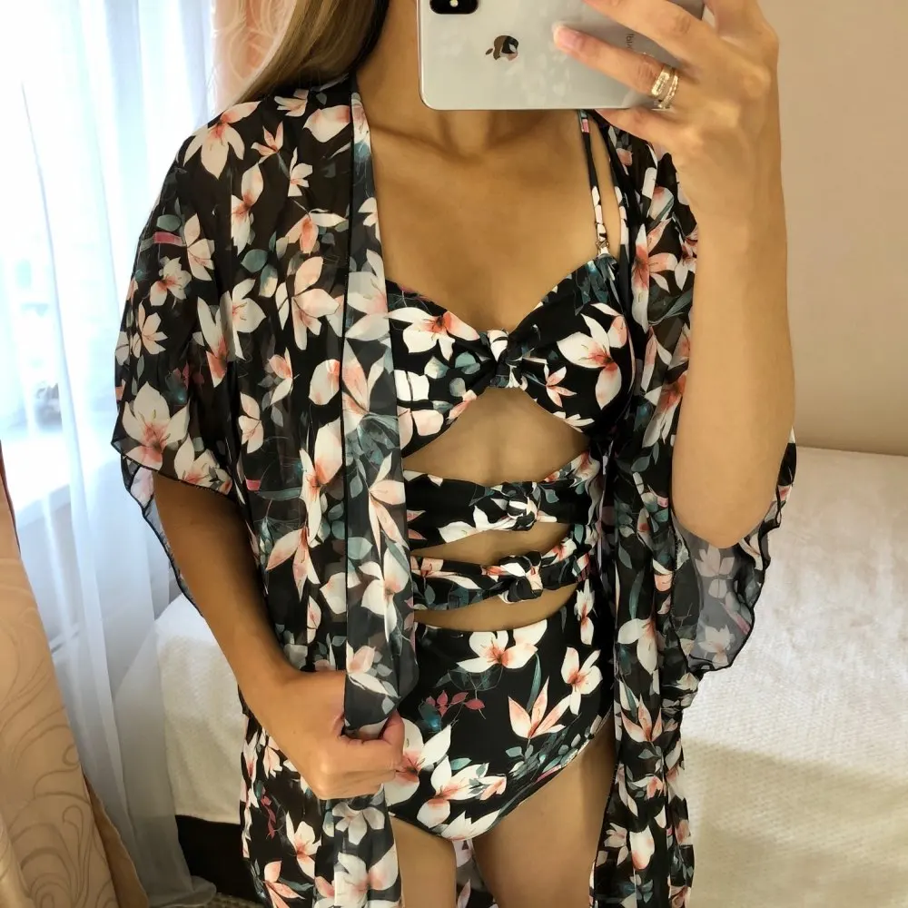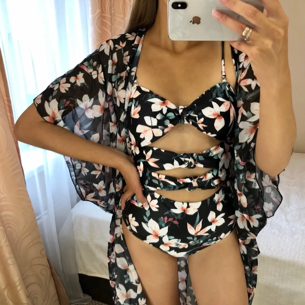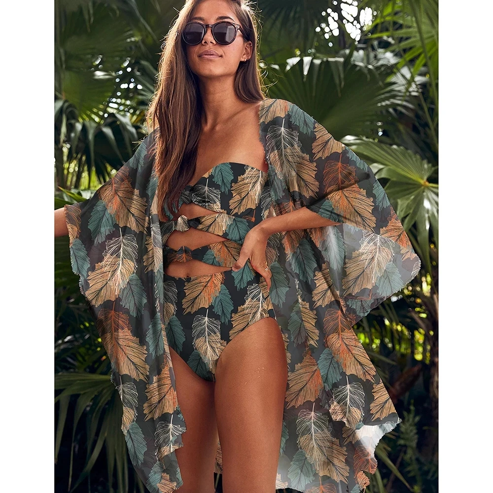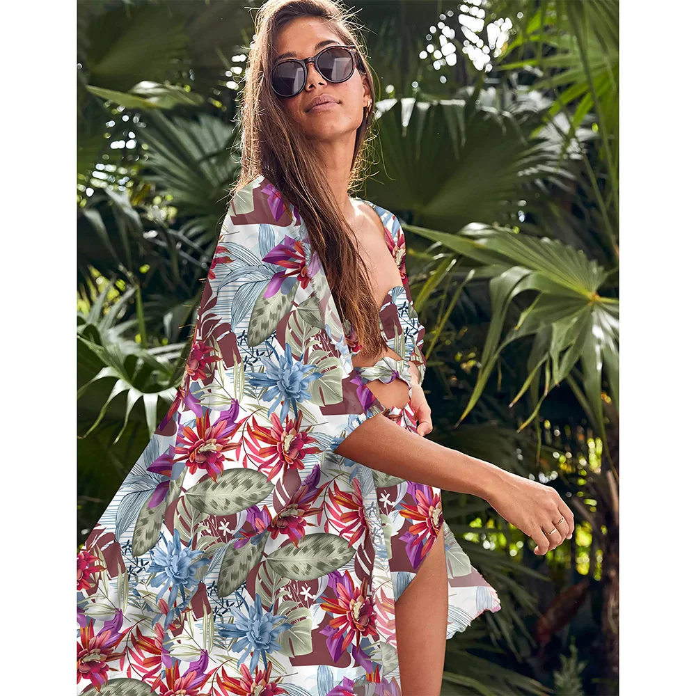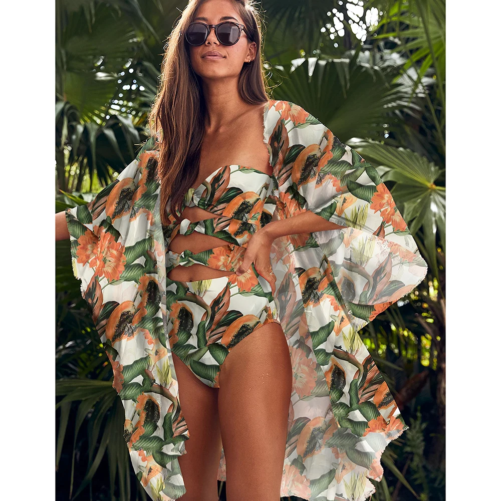 Пляжная одежда, бикини с принтом, женский купальник, юбка с запахом, с высокой талией, 2020, сексуальный саронг, пляжная одежда, купальный костюм