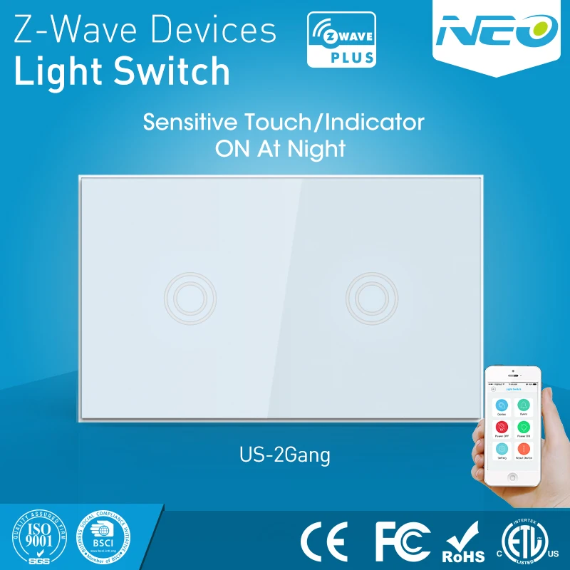 Настенный светильник ключатель света NEO COOLCAM, сенсорное управление, 2 кнопки, тип США, 908,4 МГц, Z-волна, беспроводной умный пульт дистанционного управления