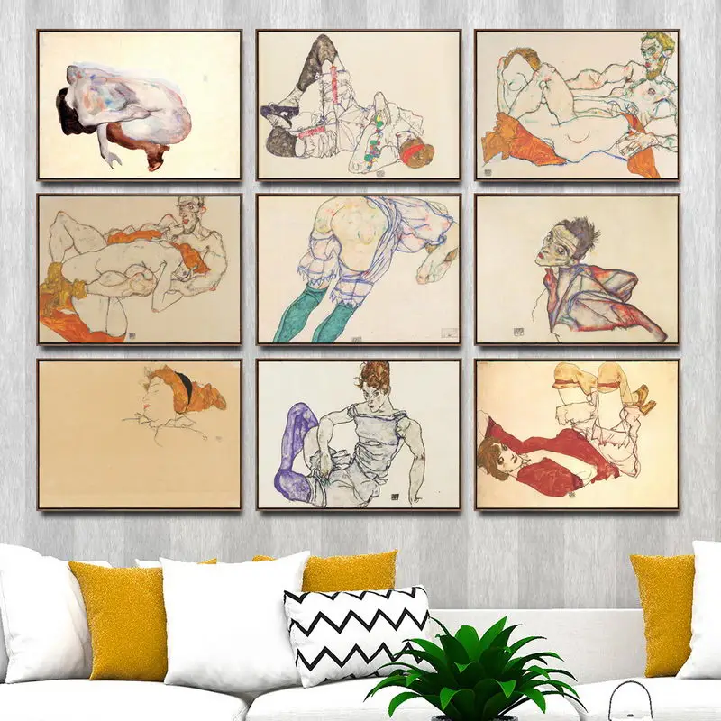 Картина на холсте, настенное искусство, модульные картины, австрийская фигурка Эгона Schiele, украшение для дома, Постер в скандинавском стиле для гостиной