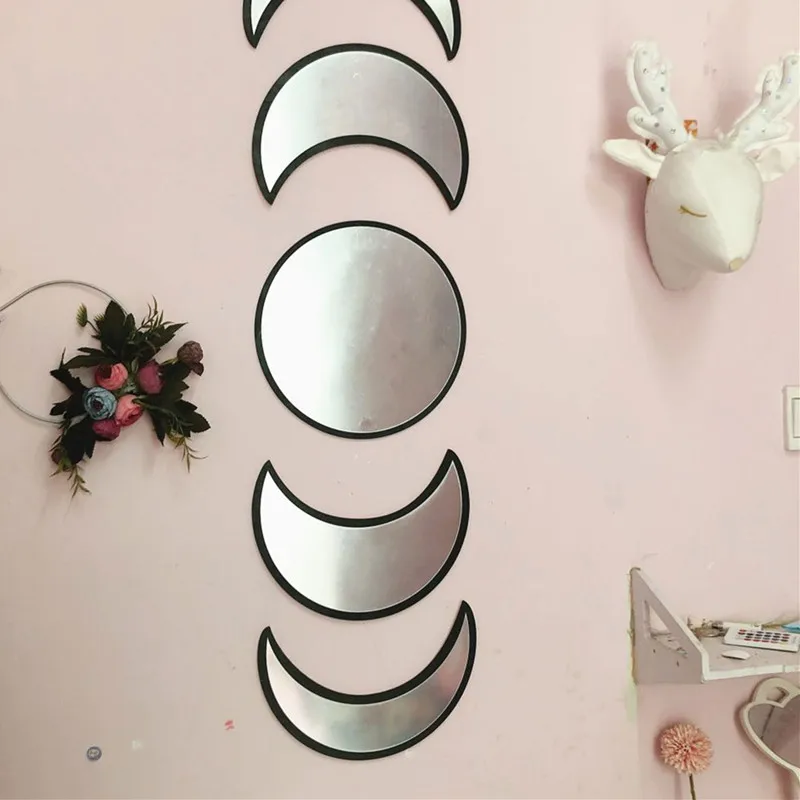 Набор деревянных зеркальных фаз в скандинавском стиле, украшение в стиле бохо, набор зеркальных фаз в стиле Луны, декор для детской комнаты, настенное зеркало в стиле Луны