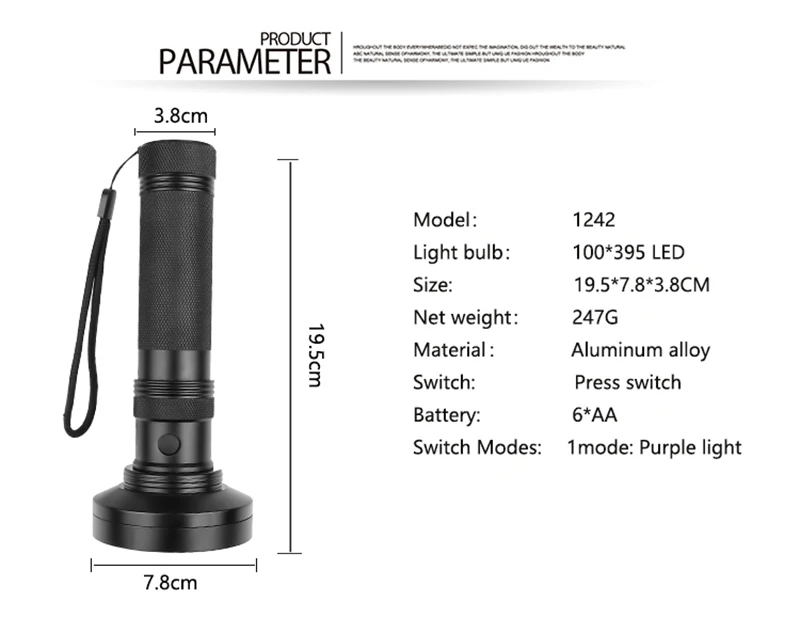 УФ светодиодный фонарик, фонарь, лампа, фонарь, батарея AA 395, один файл, переключатель, алюминиевый сплав, работающий, поймать скорпиона и стерилизовать