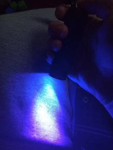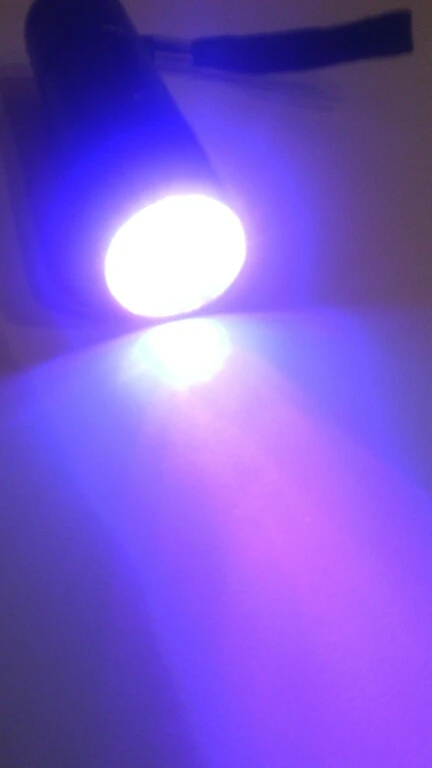 Нормальный маленький ультрафиолетовый фонарик. Работает от 3-х мизинчиковых ААА батареек или от аккумулятора. Не знаю что ещё тут добавить, кроме как - светит))