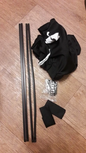 Описание точное, единственное не расписано что 2 направляющие алюминевые а 2 пластиковые. Теперь из минусов: упаковка ужасная, просто 2 коротких пакета надели с двух сторон и обмотали скотчем. Клей от пакета впитался в ткань, направляющие из алюминия гнуты в разные стороны. Можно было из картона свернуть элементарную трубку. Не советую продавца.
