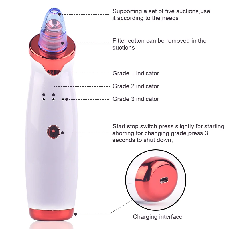 Очиститель для лица, удаление черных точек в носу, акне, Удаление прыщей, вакуумное всасывание, Алмазный T-Zone, косметический инструмент для лица, бытовой спа