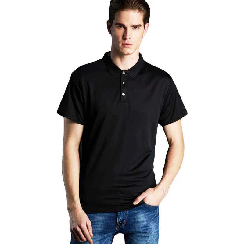 Мужская Однотонная рубашка-поло из полиэстера, с коротким рукавом и круглым вырезом