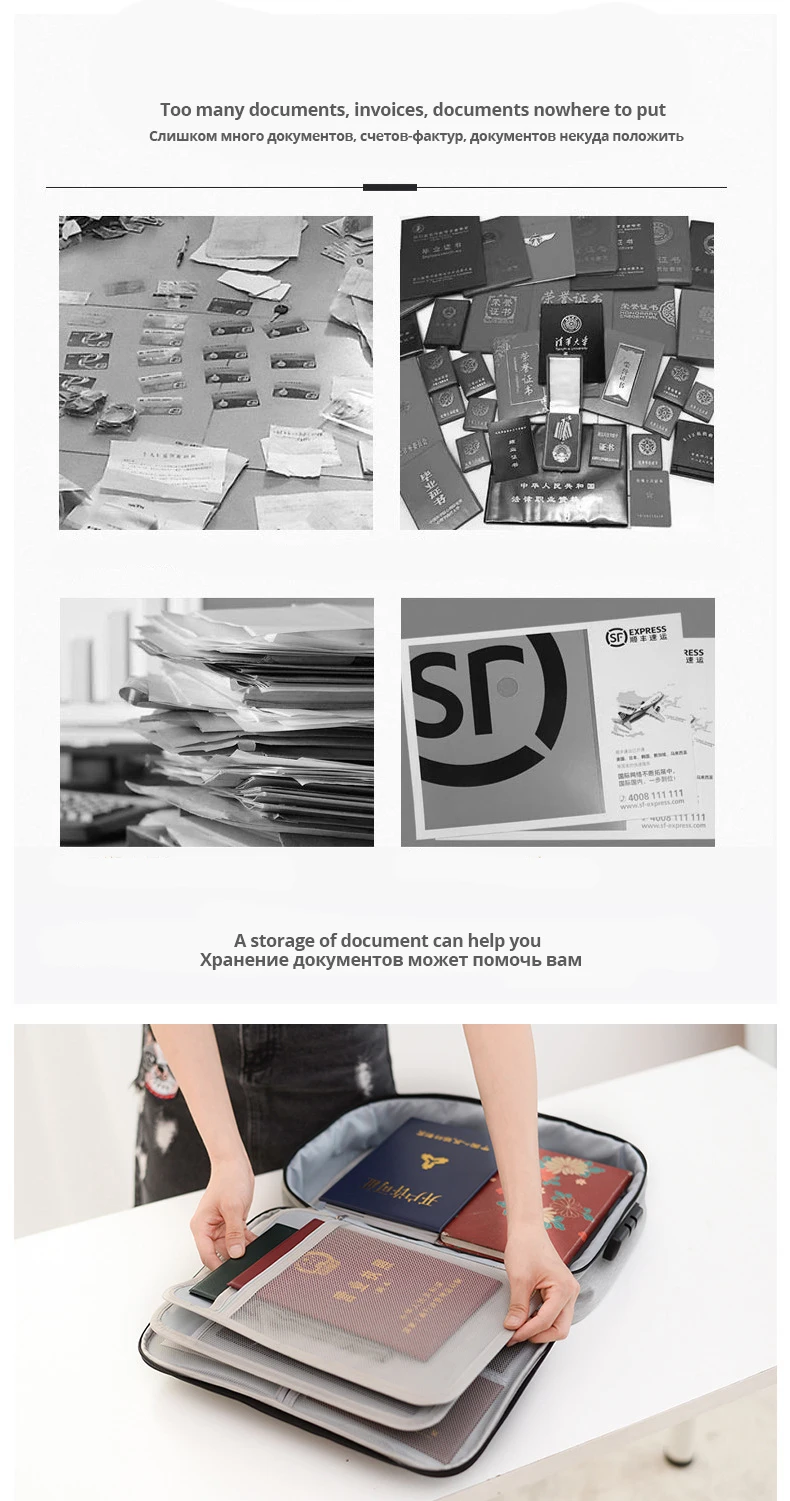 Люди должны обрабатывать много документов в течение их срока службы. Есть сумка для хранения с блокировкой паролем, чтобы защитить важные документы в сумке от потери. Вы можете установить свой собственный пароль, он не займет места, легко собрать воспоминания.