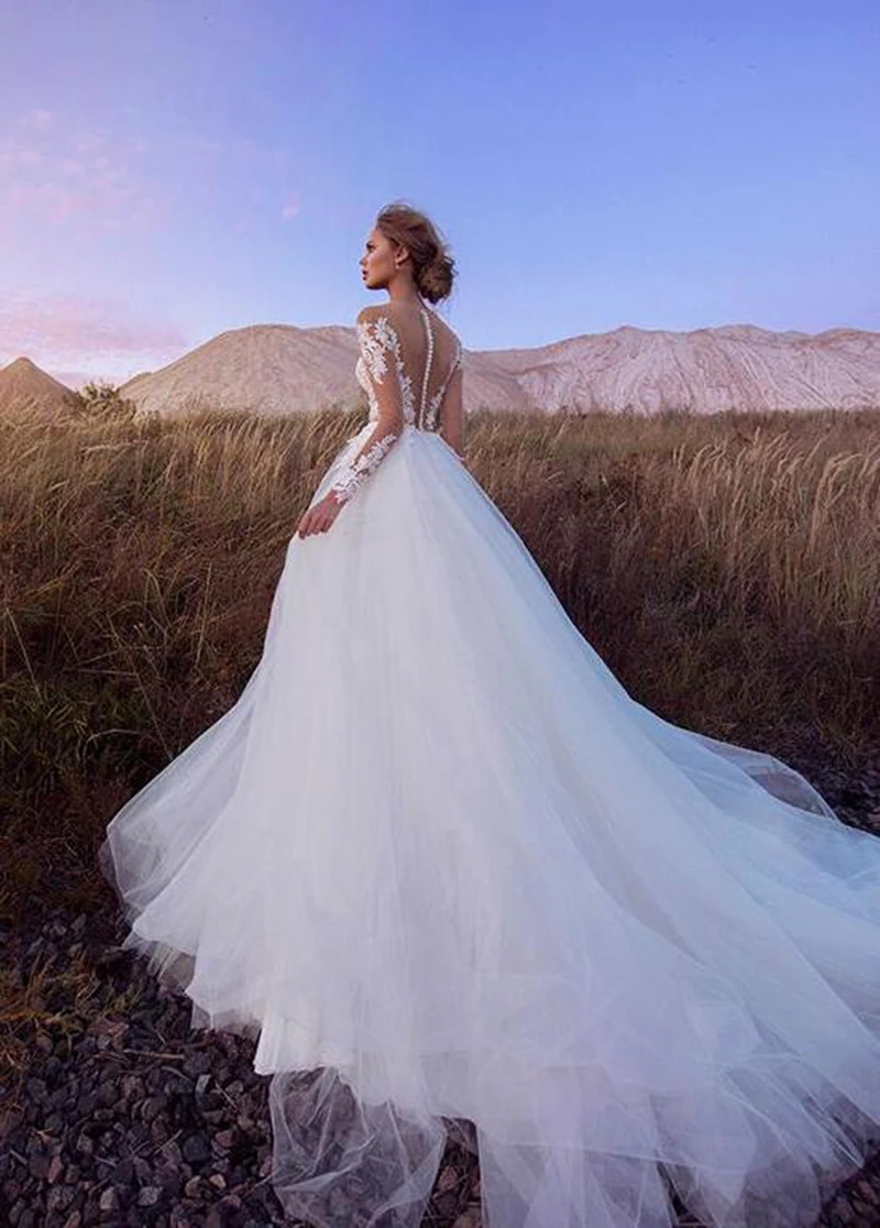 Женское свадебное платье с длинными рукавами, Кружевная аппликация ...