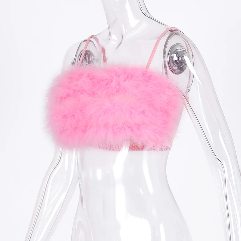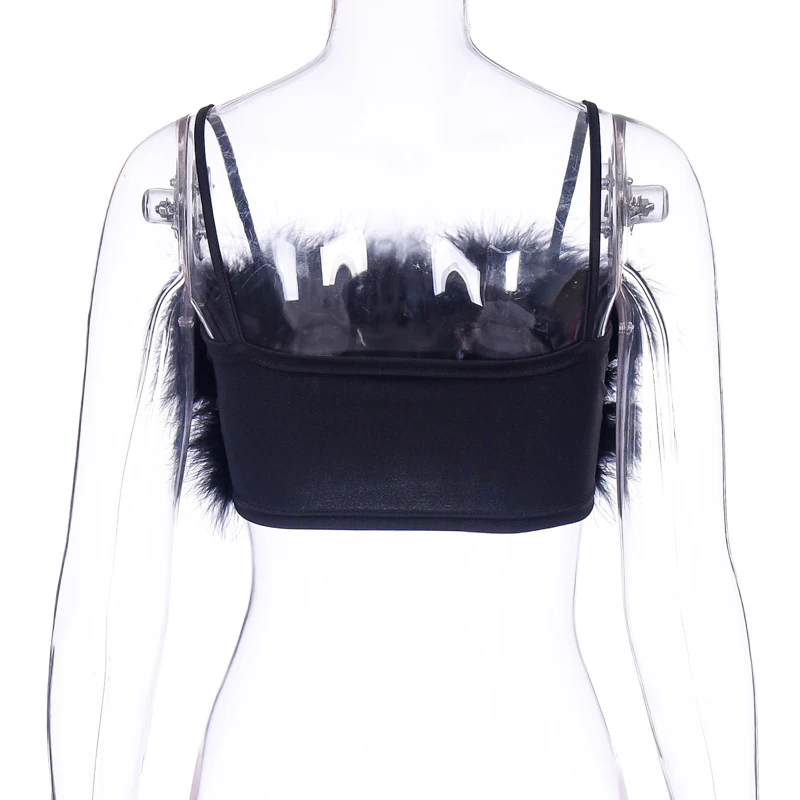 Летний модный женский пикантный топ на бретельках с имитацией меха,...