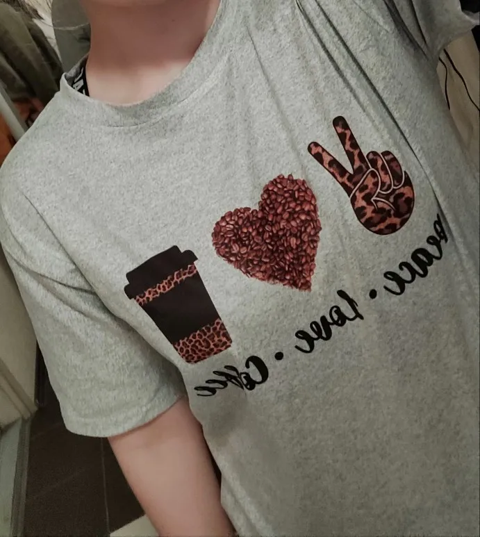 Модная женская футболка 2020, леопардовая уличная футболка с надписью Peace Love Coffee, Повседневная футболка с круглым вырезом, летние женские футболки для женщин,женские футболки,