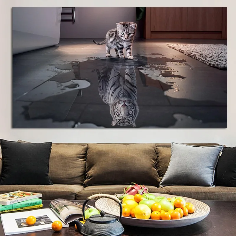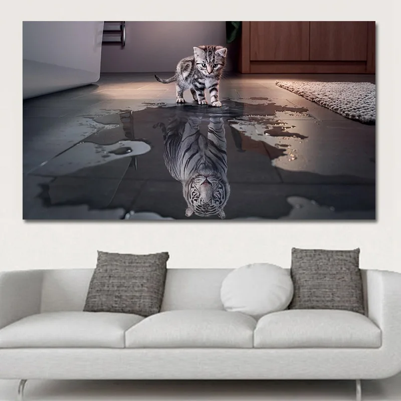 Креативная Картина на холсте с отражением кошки, принт тигра, постеры с животным, индивидуальное домашнее украшение, настенные художественные картины