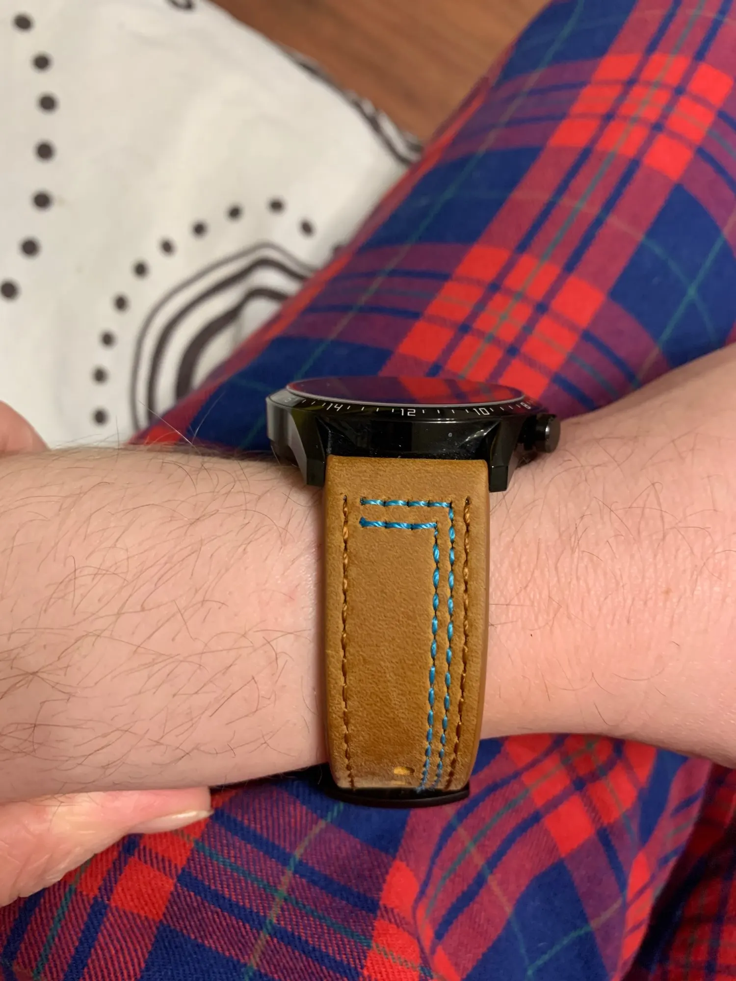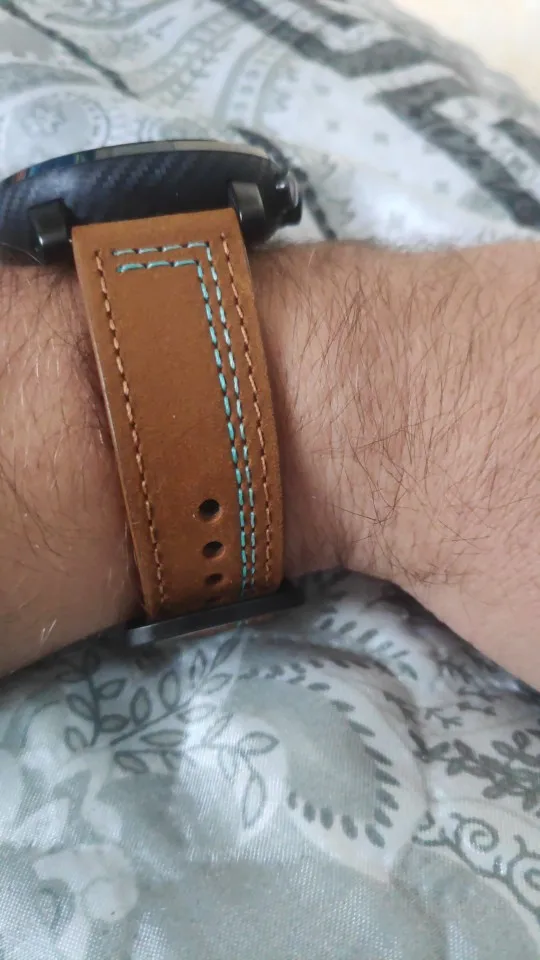 Ремешок отличный, брал на huawei watch gt. Качество безупречное. Может чуть жёстче оригинала, но зато кожаный. По размеру идеален, встал лучше чем оригинал, без всяких зазоров. Доволен на все 100%.Спасибо продавцу!!! Отправили быстро доставили через неделю!
