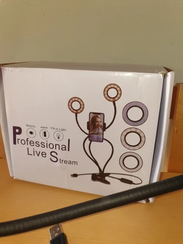 заказ сделала 14.12, пришел 30.12. на новую почту (Николаев), доставка супер быстрая. на втором и третьем фото видно теплый и холодный свет. на четвертом фото я показала, что можно пользоваться одним кольцом света. так же можно добавлять и уменьшать яркость. после испытания в темноте дополню отзыв. подставка для телефона мне не подошла, мой телефон шире (Samsung galaxy A31). но для меня это не критично... спасибо продавцу за дополнительное видео, сделанное для меня. рекомендую друзьям и знакомым. буду заказывать ещё.