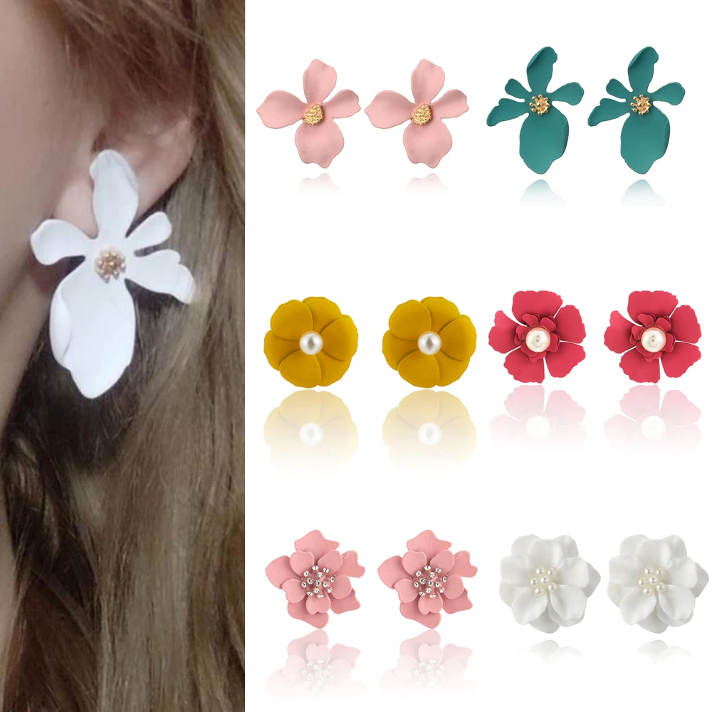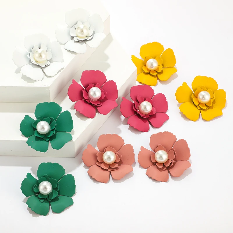 Tocona красочные красивые серьги-гвоздики с цветами для женщин из золотого сплава металла очаровательные жемчужные камни ювелирные аксессуары серёжки