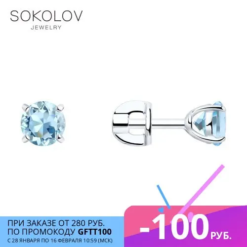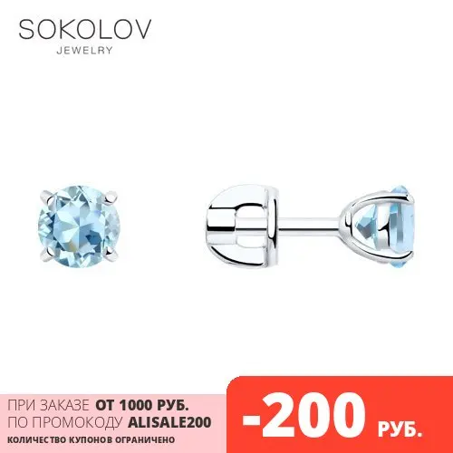 Серьги-пусеты SOKOLOV из серебра с топазами, Серебро, 925, Женские,...