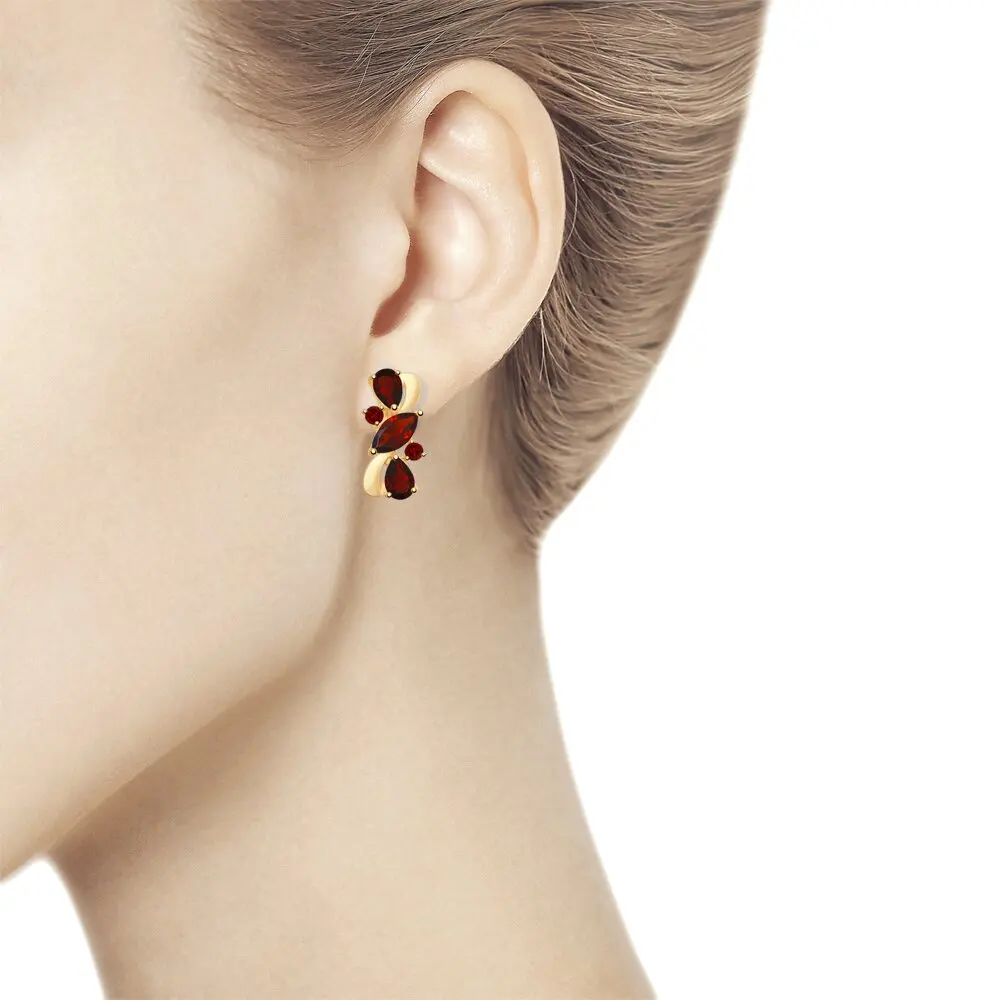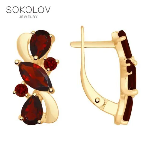 Серьги SOKOLOV из золочёного серебра с гранатами, Серебро, 925, Женские, Серьги 2022 тренд, Оригинальная продукция