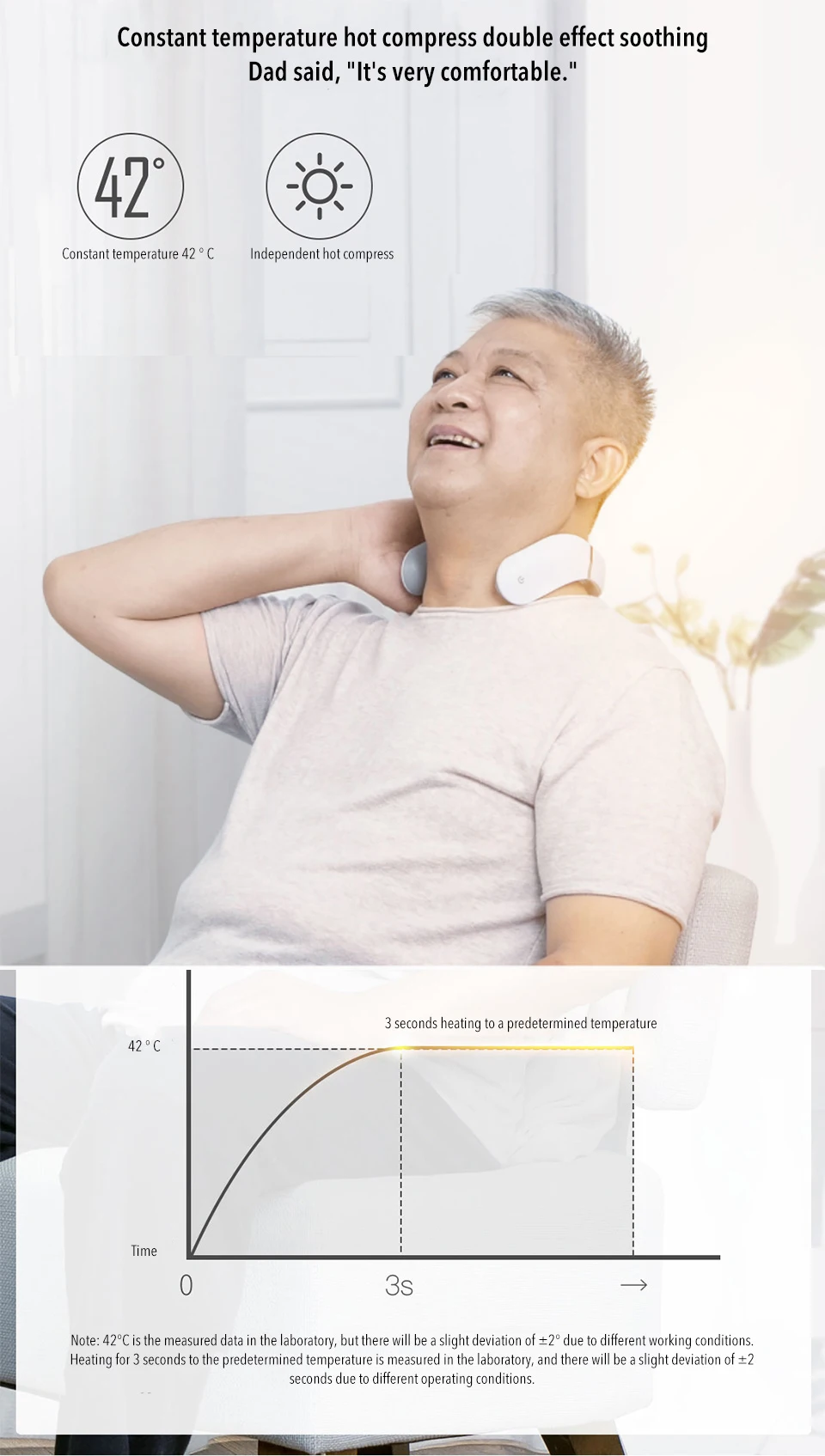 -G2 Функция горячего сжатия при постоянной температуре, 3 секунды точный контроль температуры при 42 °C с высокочувствительным сенсором, эффективное охлаждение шейного отдела позвоночника.