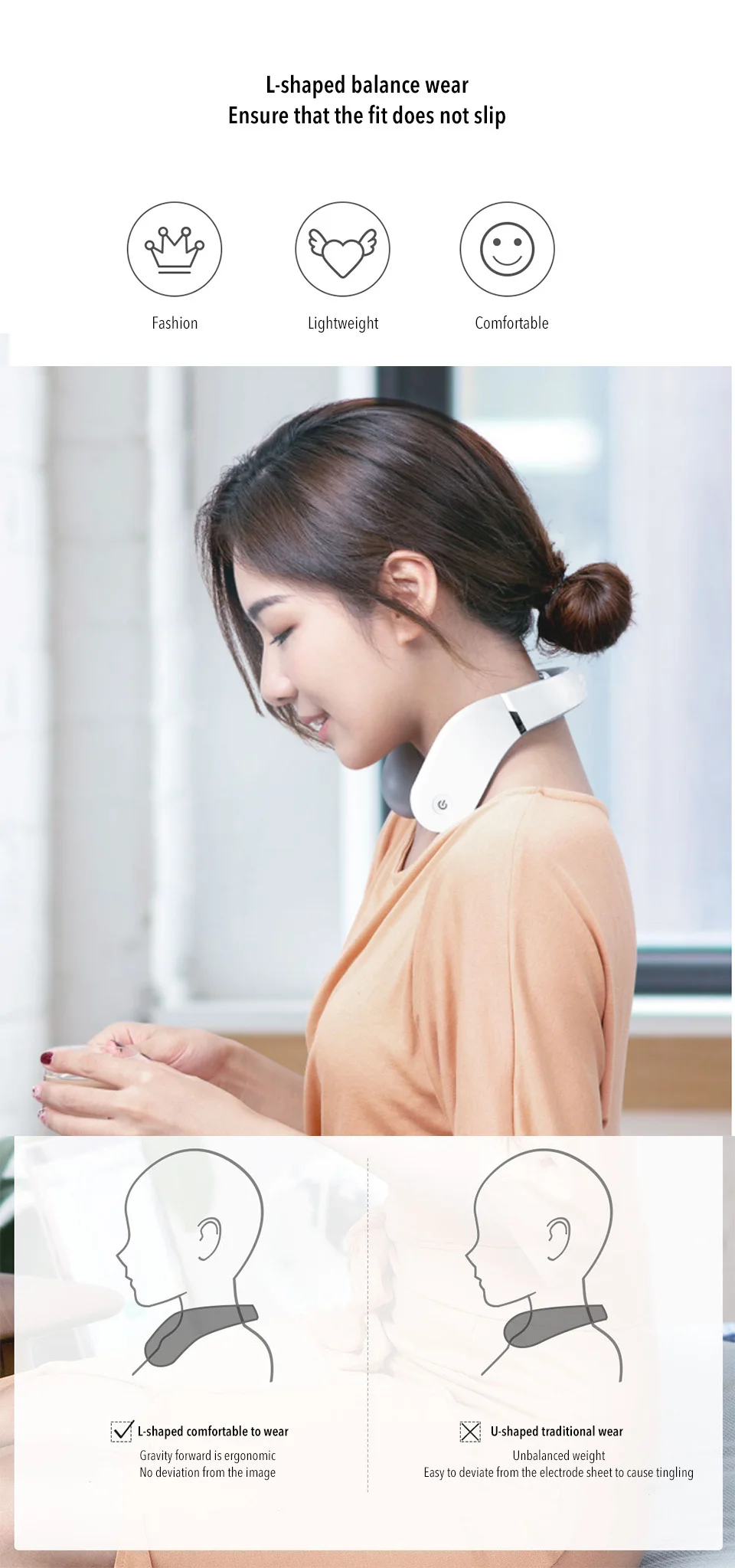 Оригинальный массажер для шеи Xiaomi G2 TENS, импульсная защита шеи, двойной эффект, горячий компресс L-образной формы, работа с приложением Mijia
