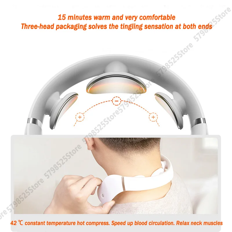 -Десятки импульсного массажа, чтобы полностью расслабить мышцы шеи. Использование принципа TENS низкочастотного импульса для имитации трех основных методов массажа разминания, соскабливания, акупунктуры и автоматического режима циркуляции.