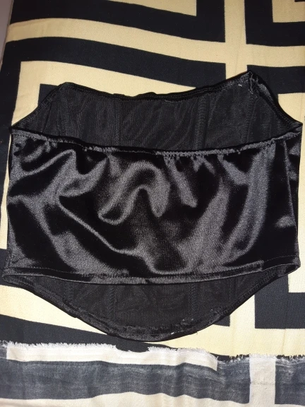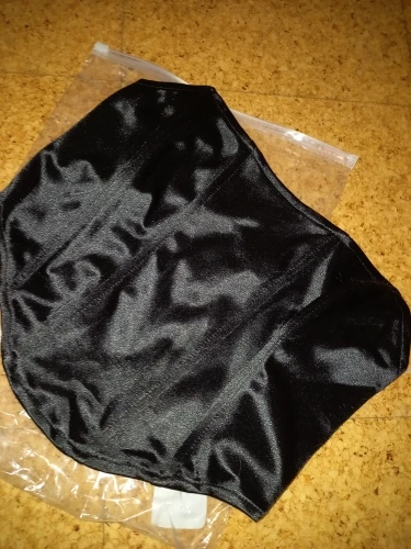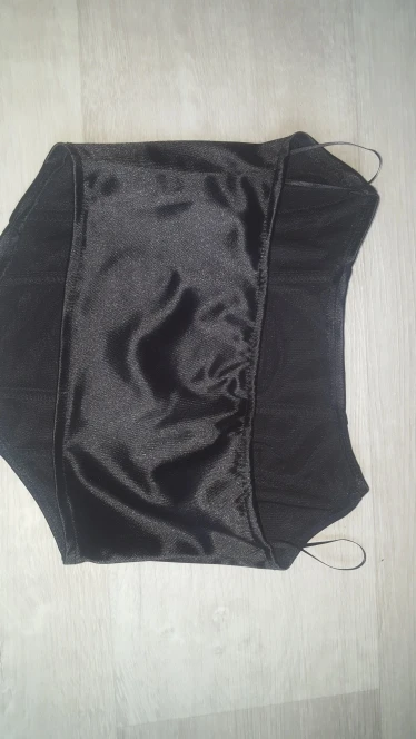Этот топ из хорошего сатина выглядит идеально. Он немного растягивается, но не очень сильно, и вы должны надеть его на голову. Моя единственная проблема в том, что скрепление подмышками немного остроконечно, но это может не быть проблемой с большими грудками. Товар прибыл в течение 15 дней! Не общался с продавцом.