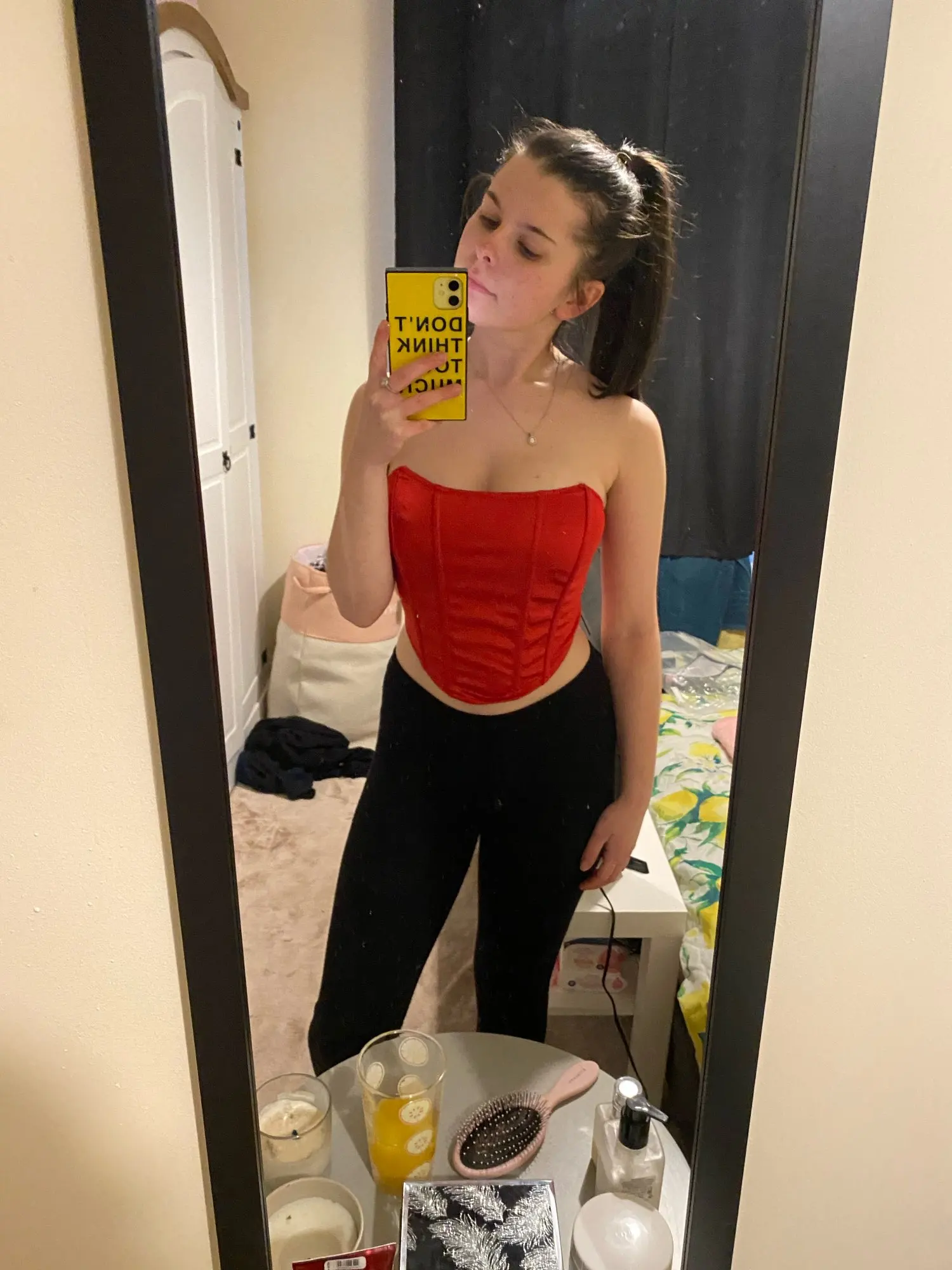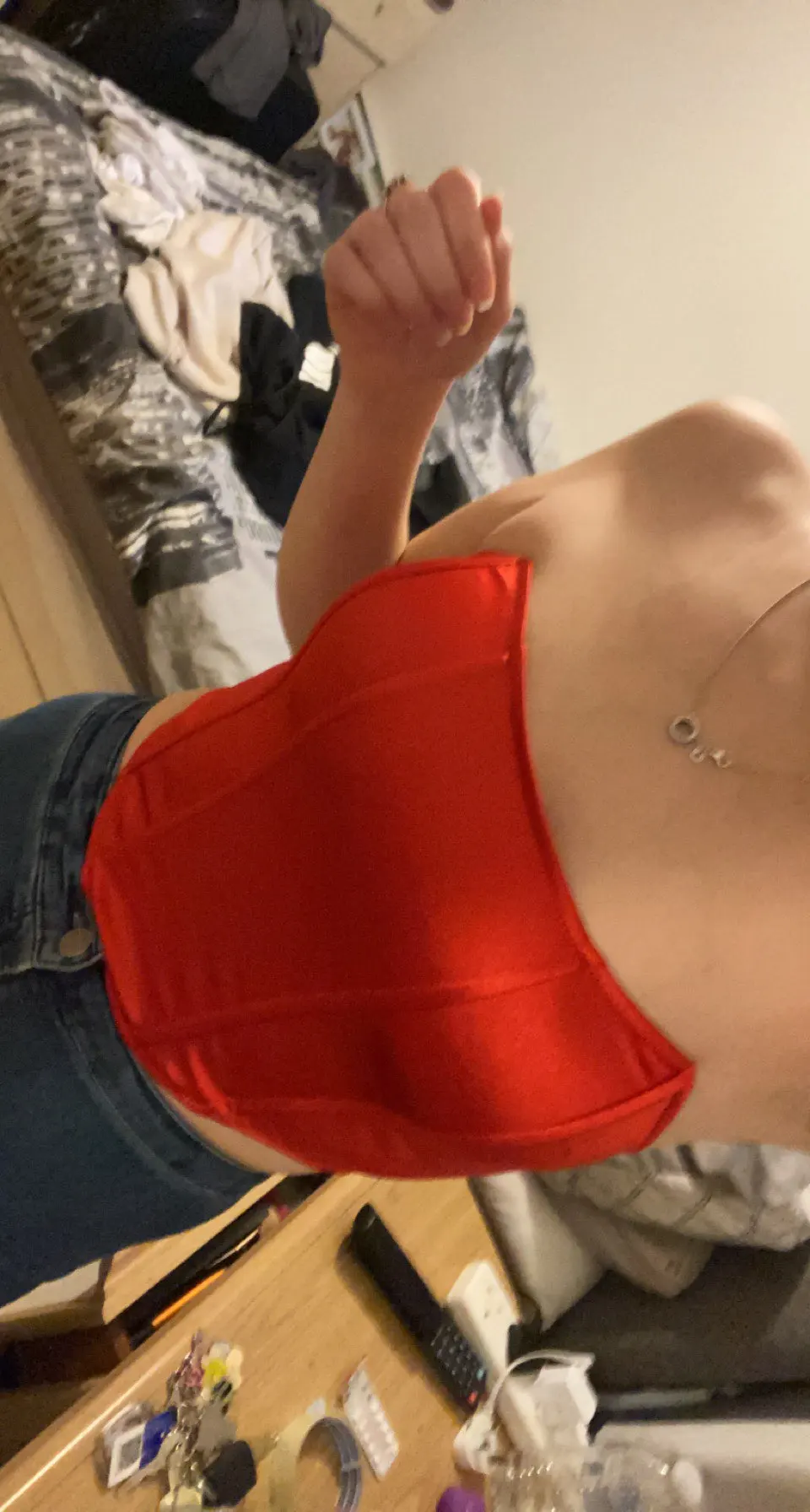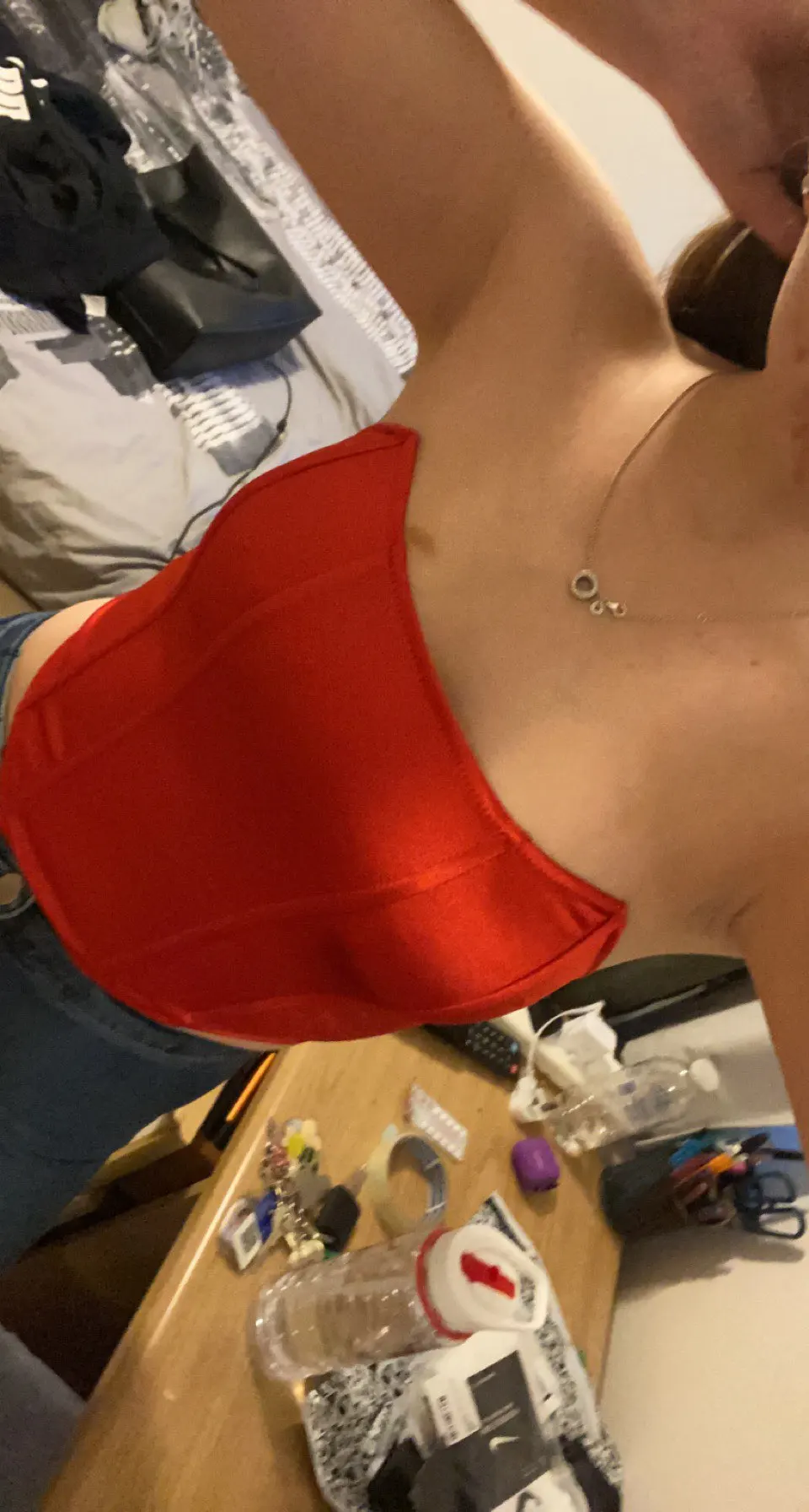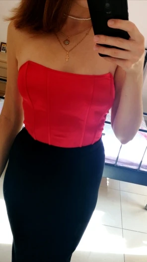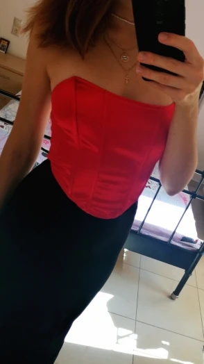 Люблю это! Обычно я не ношу красный, и я рад, что подобрал красный для этого топа. Ткань очень мягкая, а пластмассовое соединение в верхней части очень прочное. Я бы порекомендовал размер вниз, если у вас есть маленькие груди, так что Топ тугой. Это заняло больше месяца, чтобы приехать, но его стоит подождать.