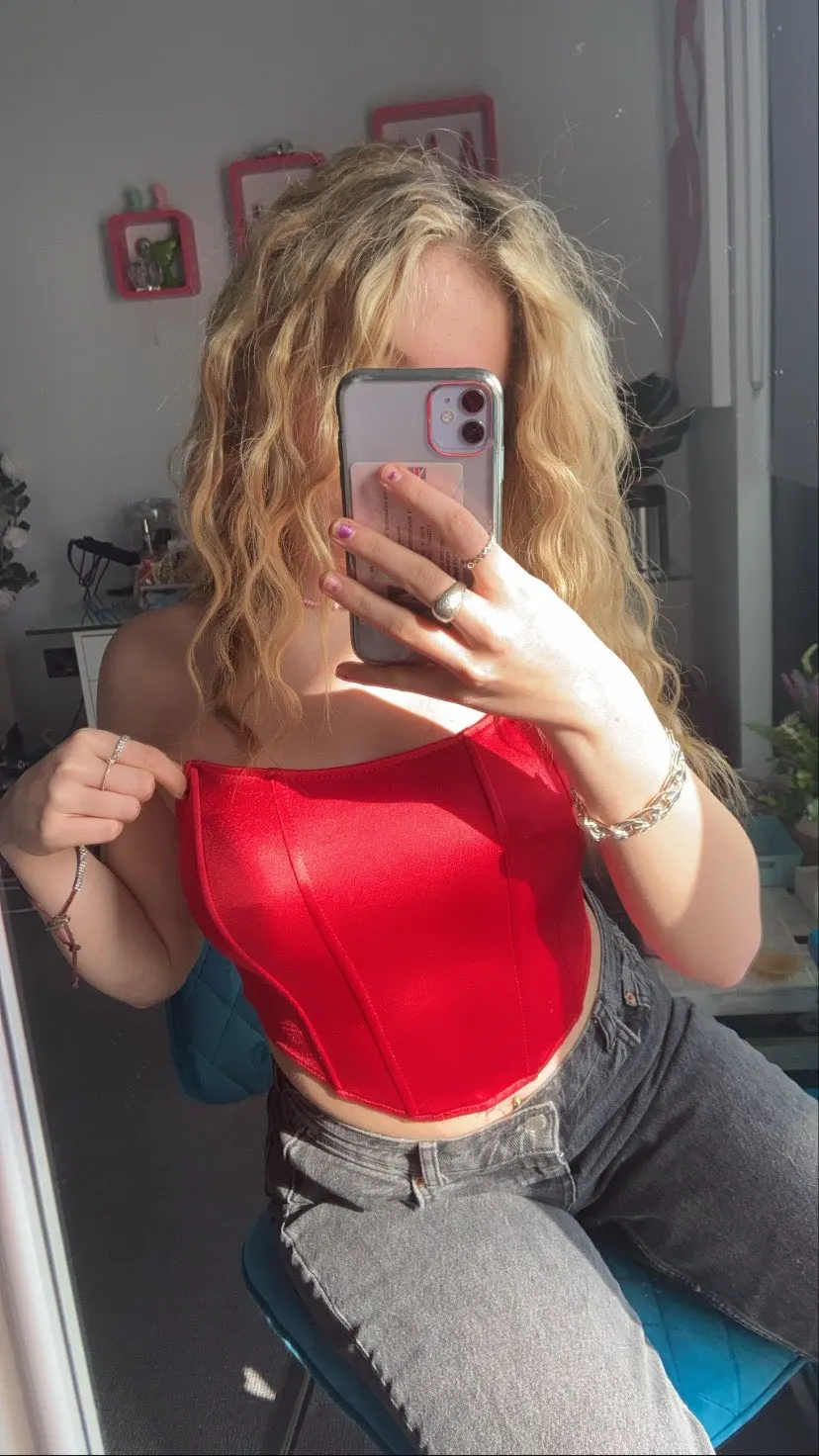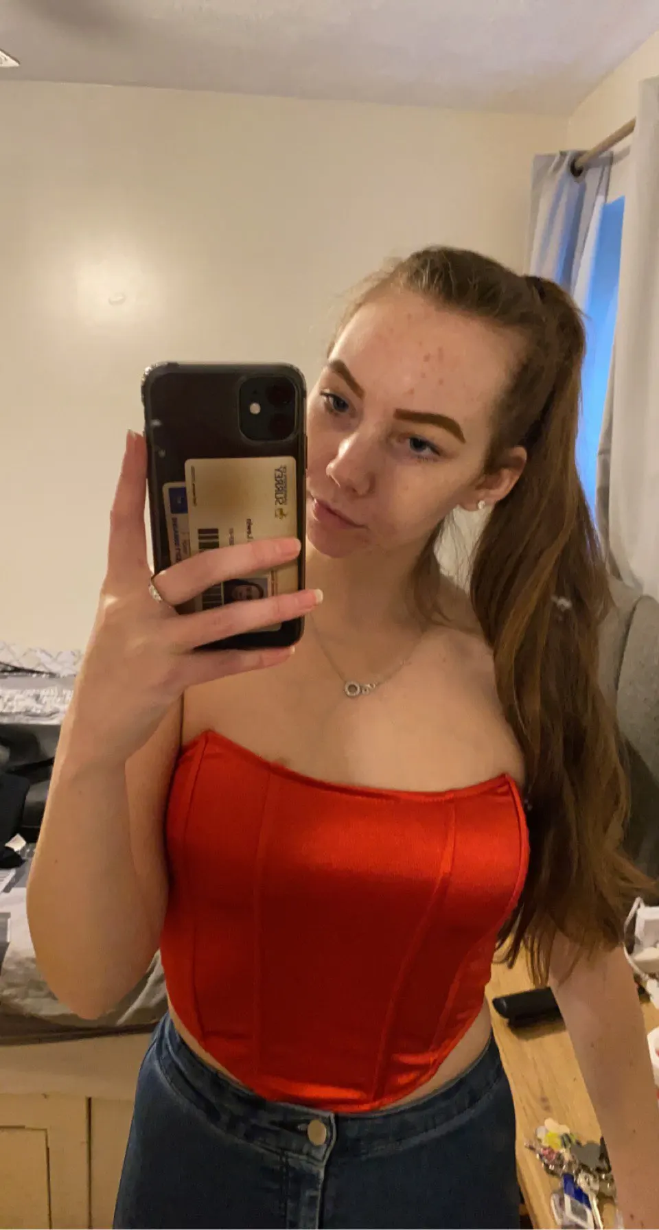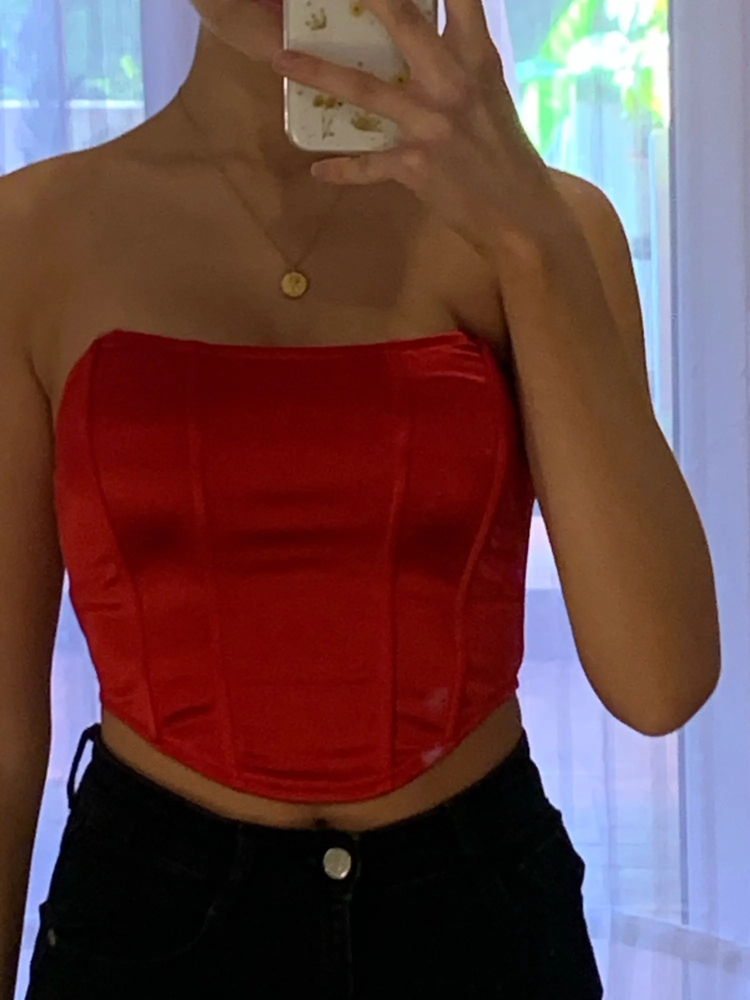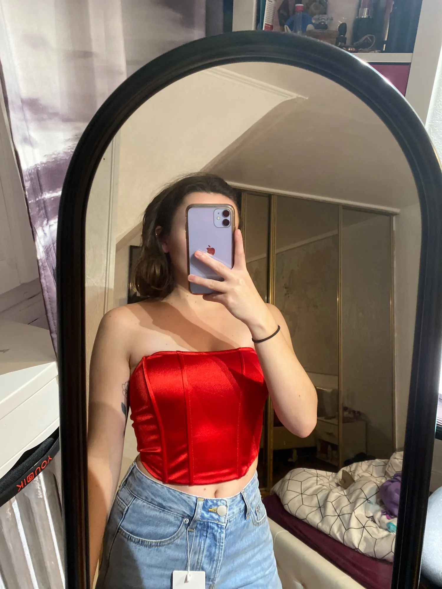Люблю это! Обычно я не ношу красный, и я рад, что подобрал красный для этого топа. Ткань очень мягкая, а пластмассовое соединение в верхней части очень прочное. Я бы порекомендовал размер вниз, если у вас есть маленькие груди, так что Топ тугой. Это заняло больше месяца, чтобы приехать, но его стоит подождать.
