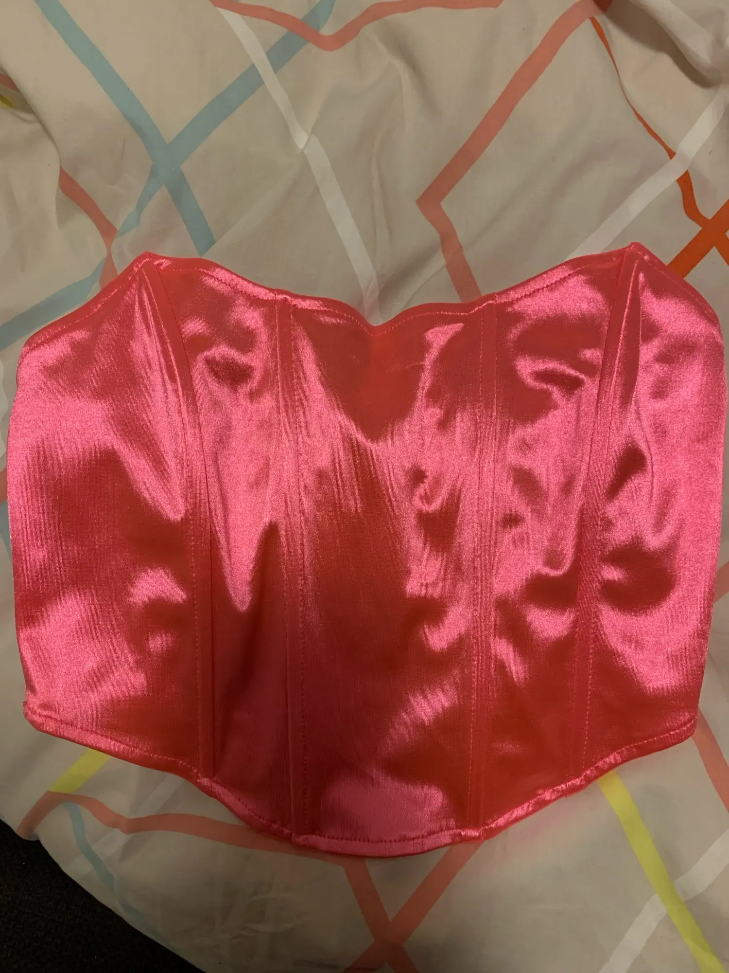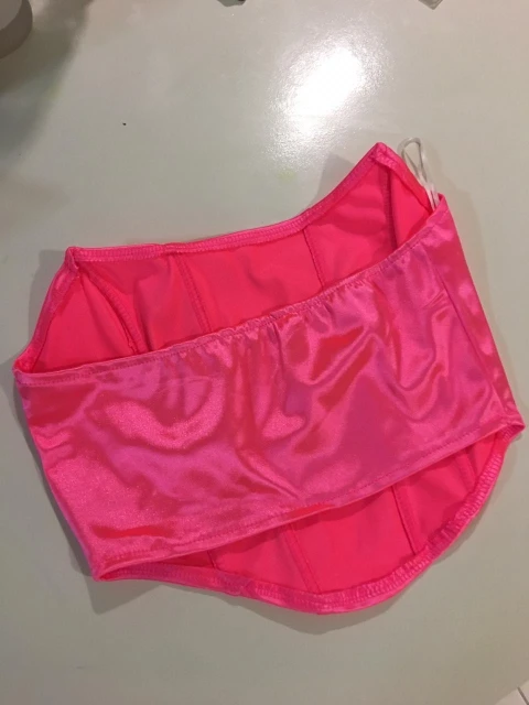 Милое бюстье. Я купил M, чтобы соответствовать моему 32D обхвату груди и 66 см линии талии, и он идеально подходит. Цвет-красивый оттенок неонового розового и блестящий, как на картинке. Швы аккуратно сшиты. Продавец отправил товары на следующий день и прибыл в Индию в течение трех недель. Определенно рекомендую покупать в этом магазине.