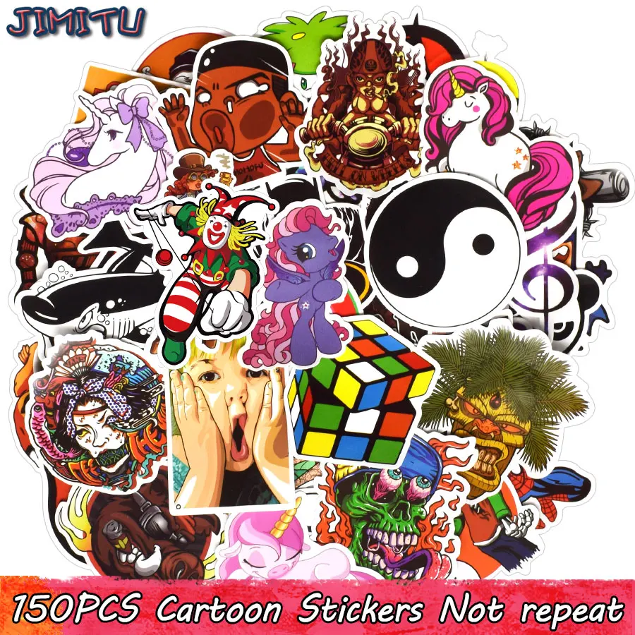 150 шт. забавные наклейки s Pack ПВХ Мультяшные смешанные граффити темные крутые наклейки для чемодан для скейтборда автомобильный холодильник наклейки для гитары