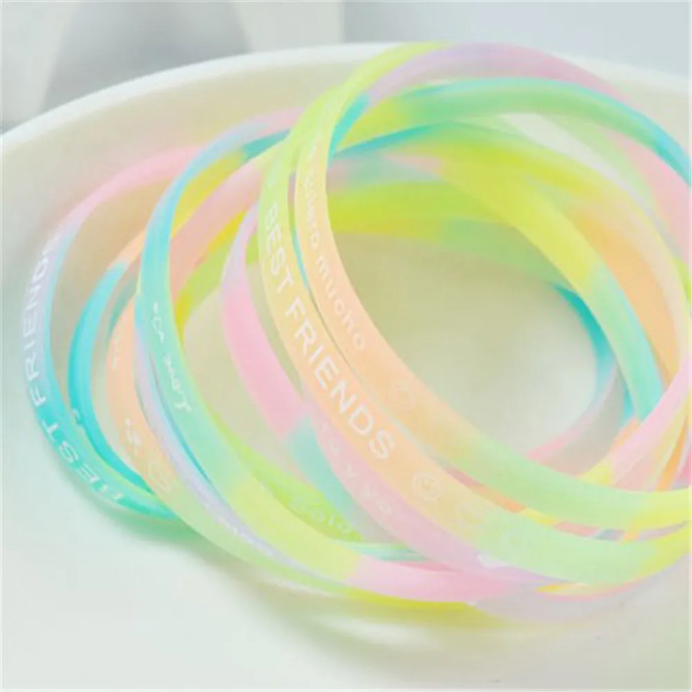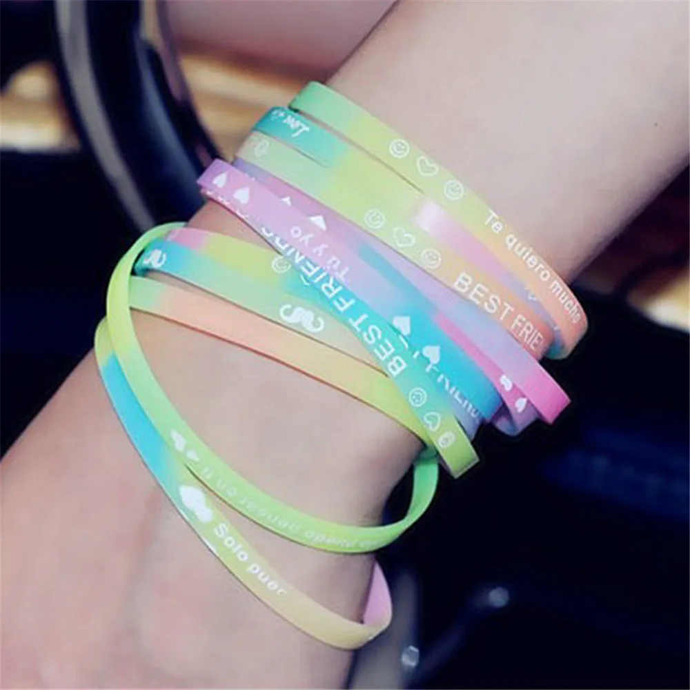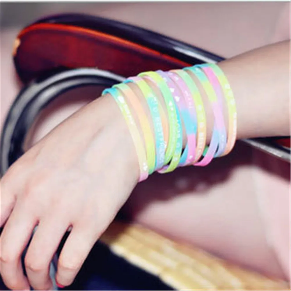 Печатные буквы светящиеся силиконовые спортивные браслеты и браслеты для женщин флуоресцентные резиновые фитнес утолщенный браслет
