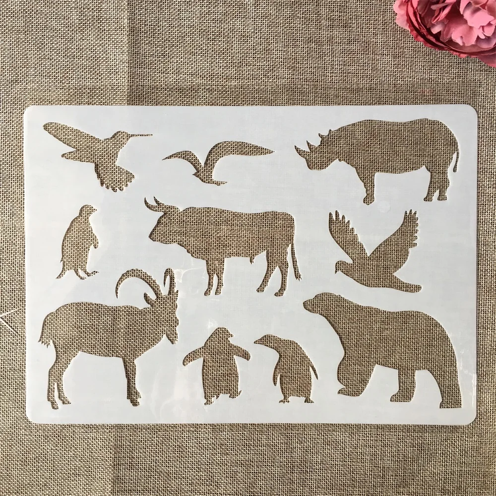 Трафареты для рисования, А4, 29 см, животные, коза, носорог, раскраска для скрапбукинга, рельефная декоративная альбомная бумага
