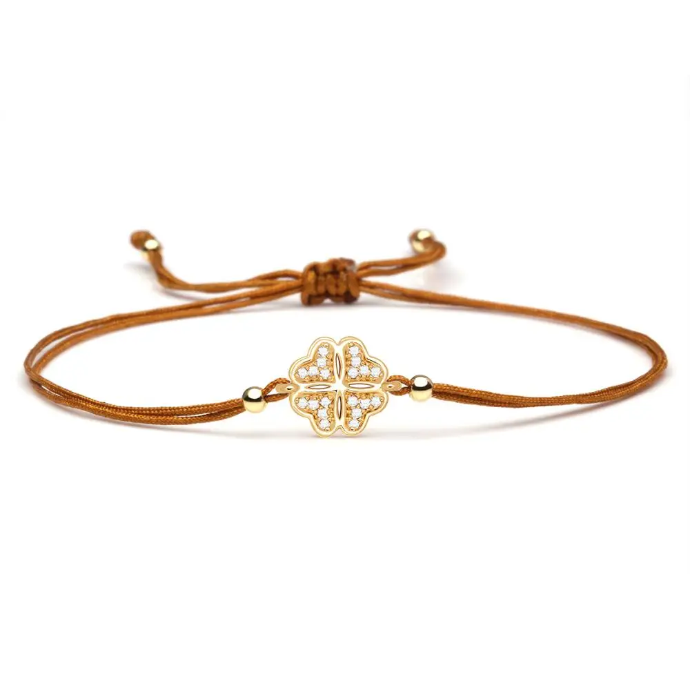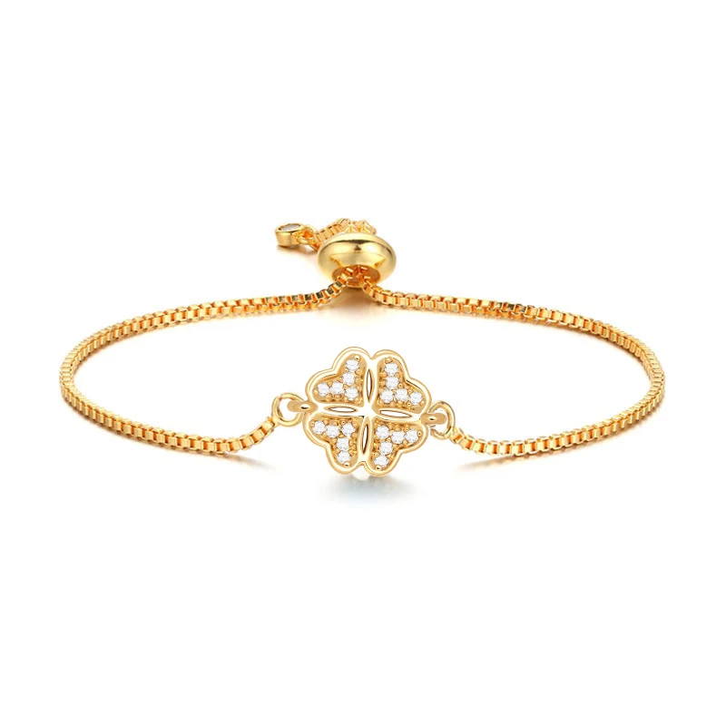 Белый кубический цирконий четырехлистный клевер, очаровательный браслет для женщин, медная цепочка с фианитом, ручная работа, регулируемые модные ювелирные изделия дружбы