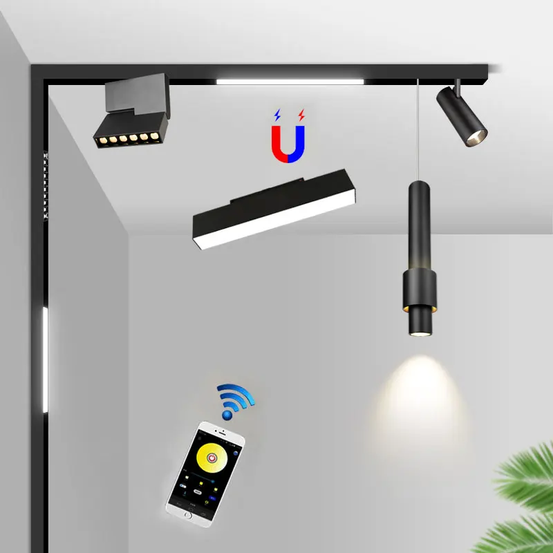 Креативный беспроводной встраиваемый Магнитный светильник с Bluetooth, 12 Вт, 20 Вт, внутренний светильник для гостиной, коридора, Домашний Светильник, 0,5 м, 1 м, светодиодная трековая лампа, светильники