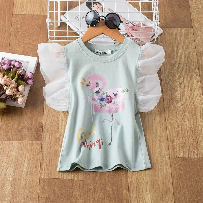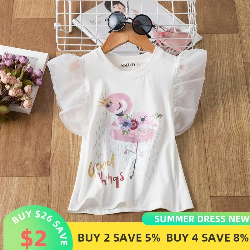 Летняя футболка для девочек, детская хлопковая футболка с коротким ...