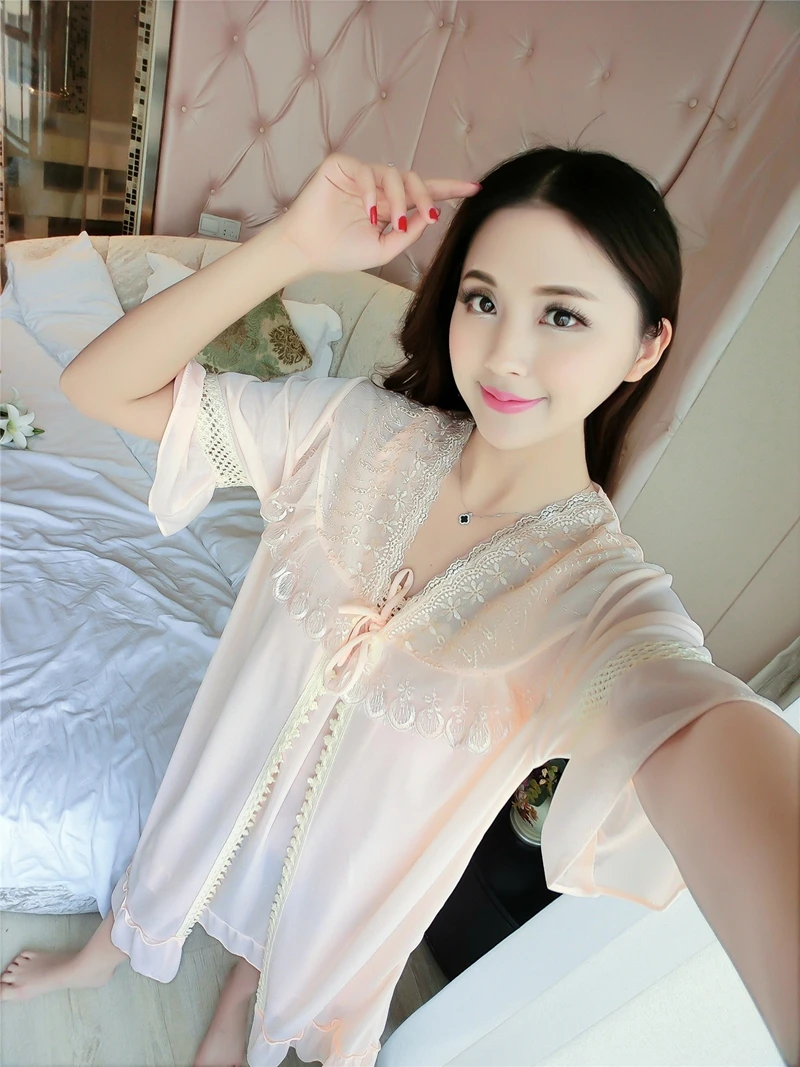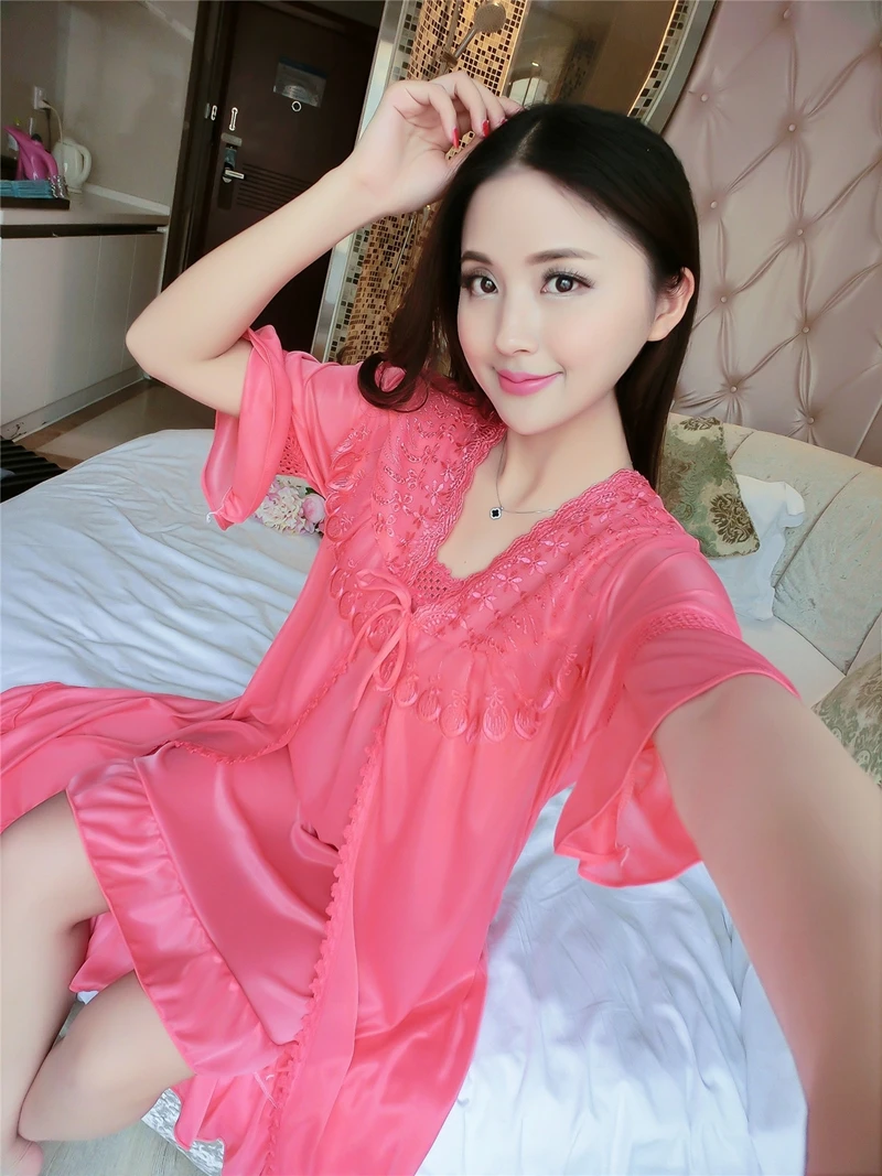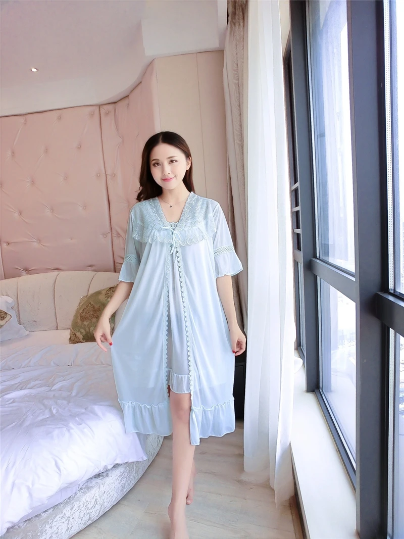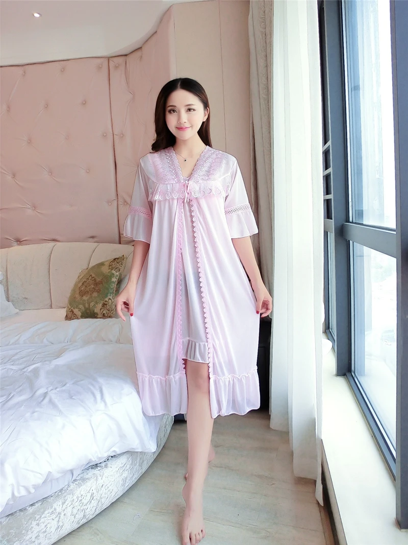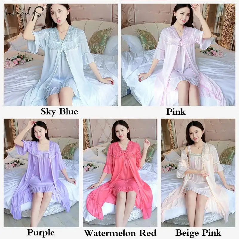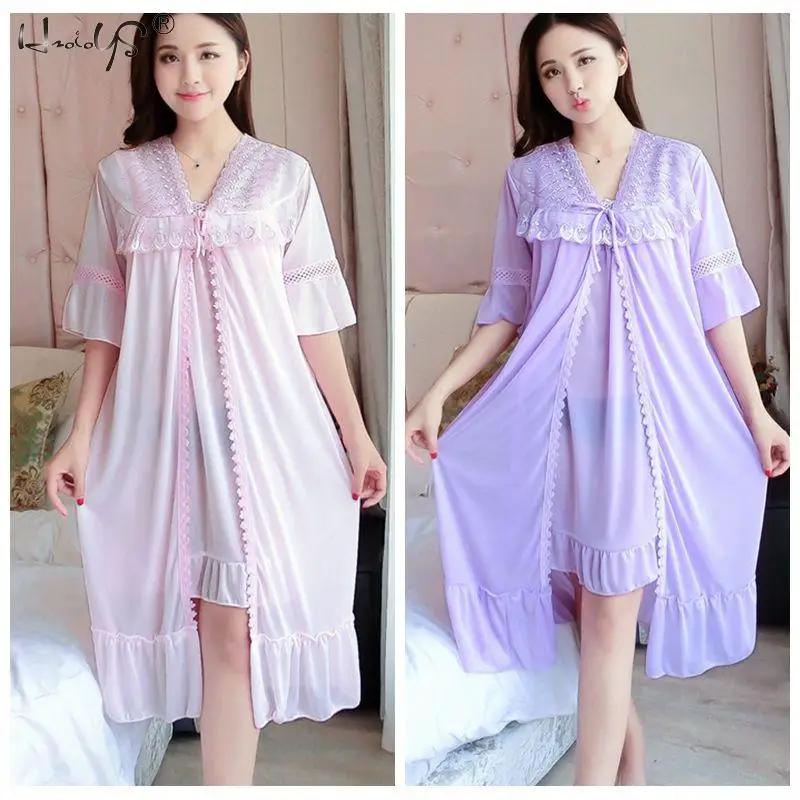Комплект женский кружевной из халата и ночного платья, пикантный комплект из 2 предметов, шелковый халат для сна, домашняя одежда