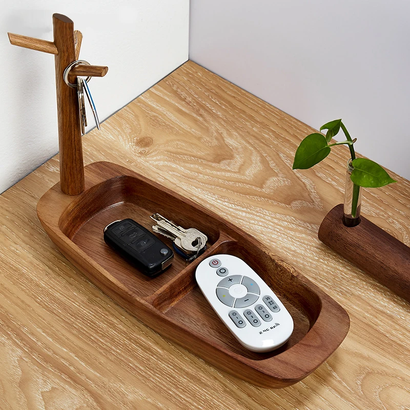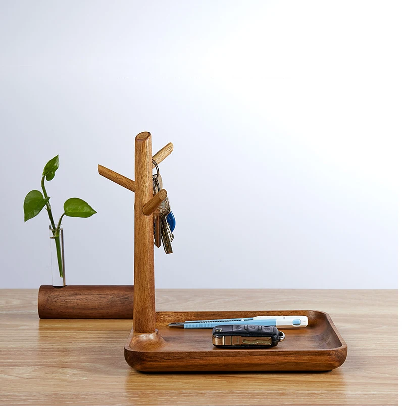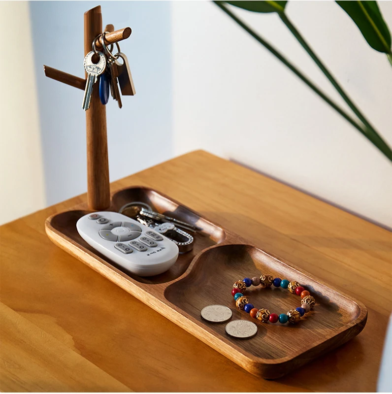 Деревянные лотки для хранения, квадратный поднос для ювелирных изделий, телефона, ключей, кошелька, Настольная коробка для хранения монет, корзины для всякой всячины, декоративные лотки