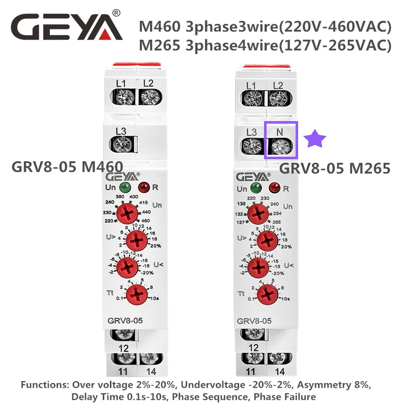 Советы: Эта ссылка предназначена для GRV8-03/08 трехфазного реле напряжения, если вам нужно GRV8-01/02 Однофазное реле напряжения, пожалуйста, нажмите здесь, спасибо! GRV8-03-08 M460 : 10A, 1SPDT, 3 фазы 3 провода = M460 Диапазон напряжения: M460 (P-P) GRV8-03-08 M265: 10A, 1SPDT, 3 фазы 4 провода = M265 Диапазон напряжения: M265 (P-N) GRV8-03D-08D M460: 8A, 2SPDT, 3 фазы 3 провода = M460 Диапазон напряжения: M460 (P-P) GRV8-03D-08D M265:8А, 2SPDT, 3 фазы 4 провода = M265 Диапазон напряжения: M265 (P-N)Общий