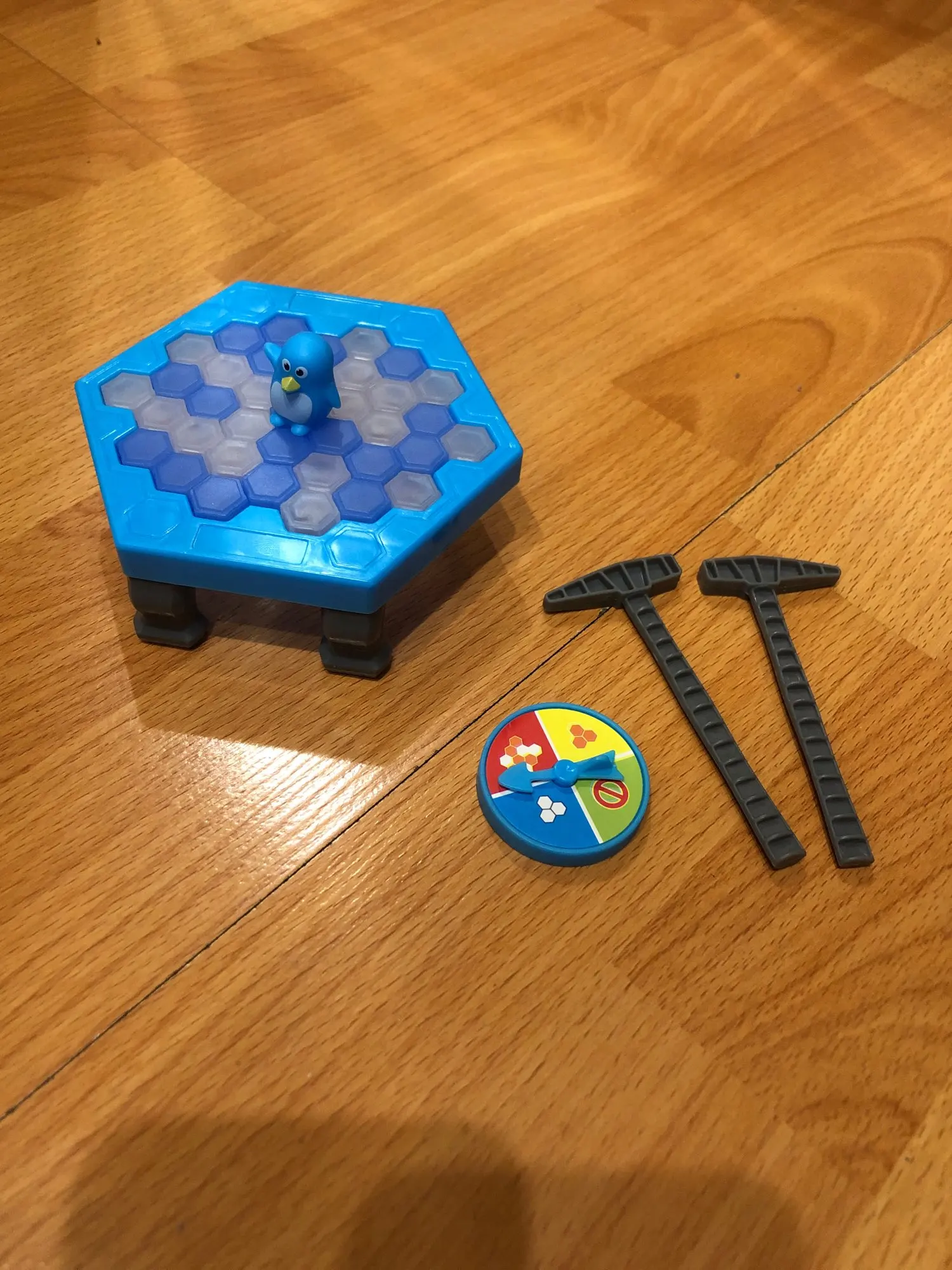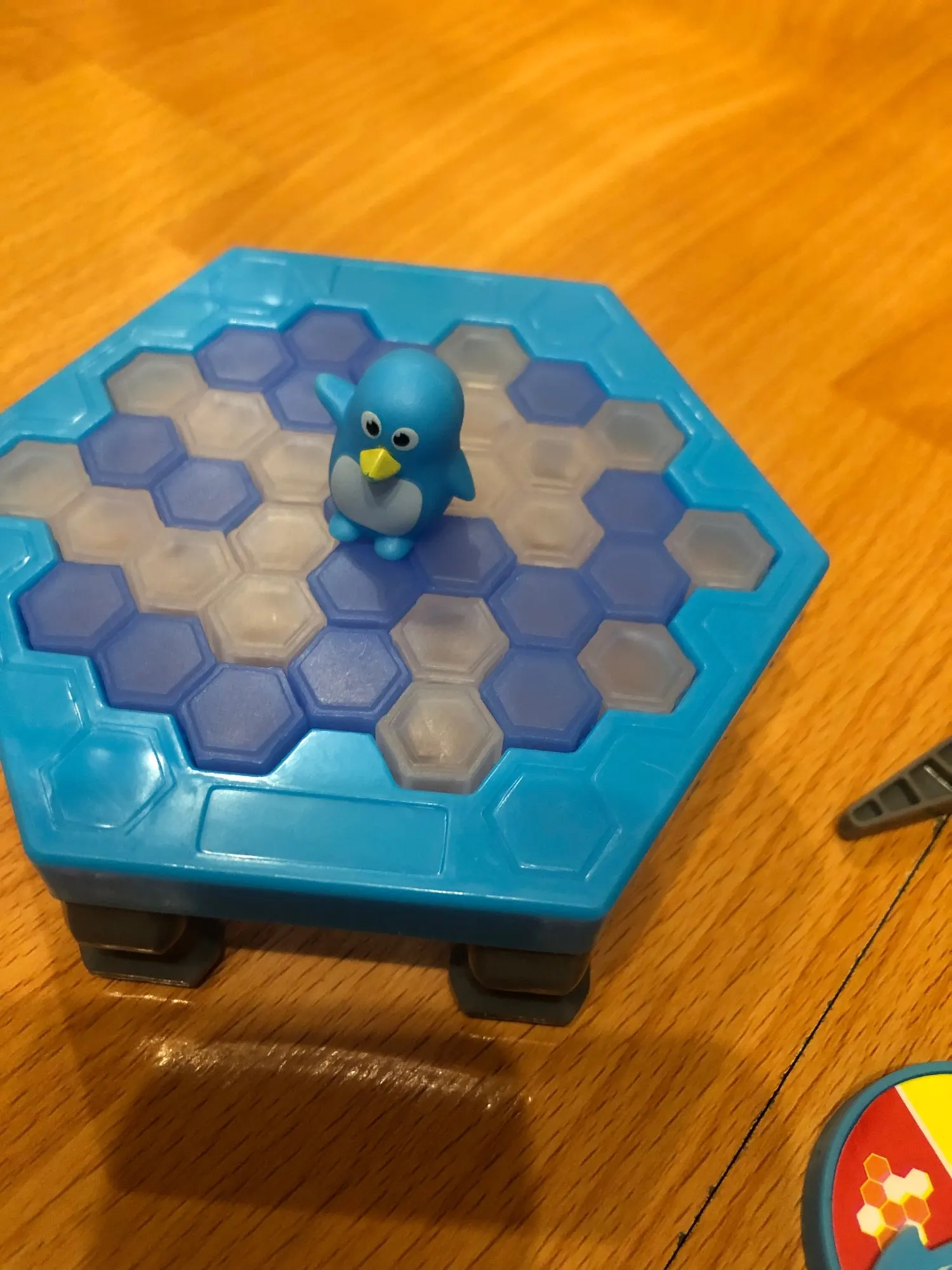 Отличная игра, Интересно даже детям 3г. Называется ловушка для пингвина. Цель чтобы пингвин не упал когда выбиваешь льдинки. Коробка пришла помятая но сам товар отличный